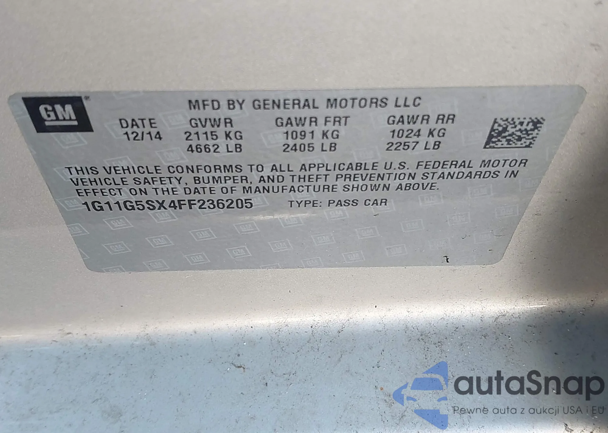 LOT: 43709329 VIN: 1G11G5SX4FF236205
