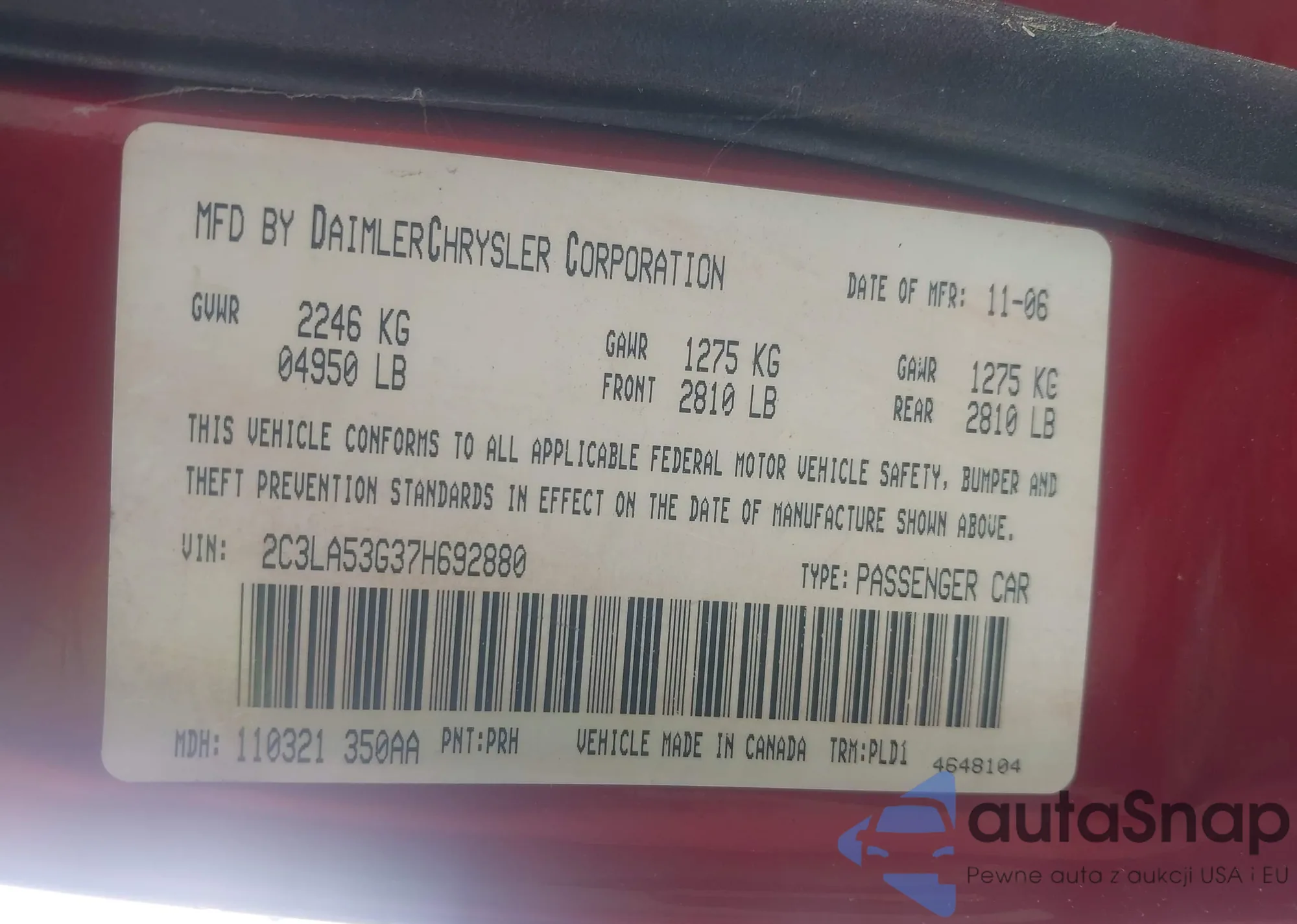 • VIN 2C3LA53G37H692880