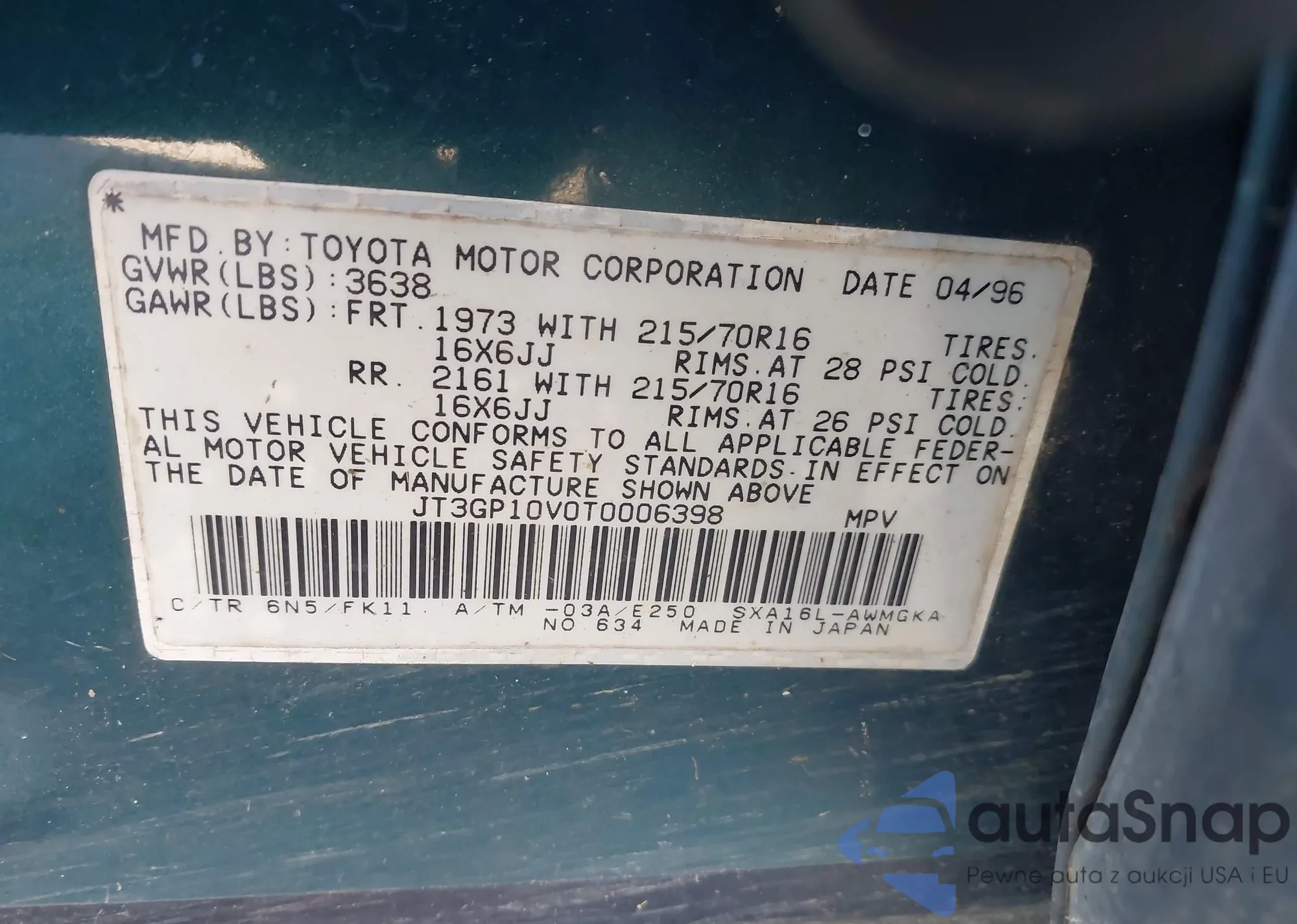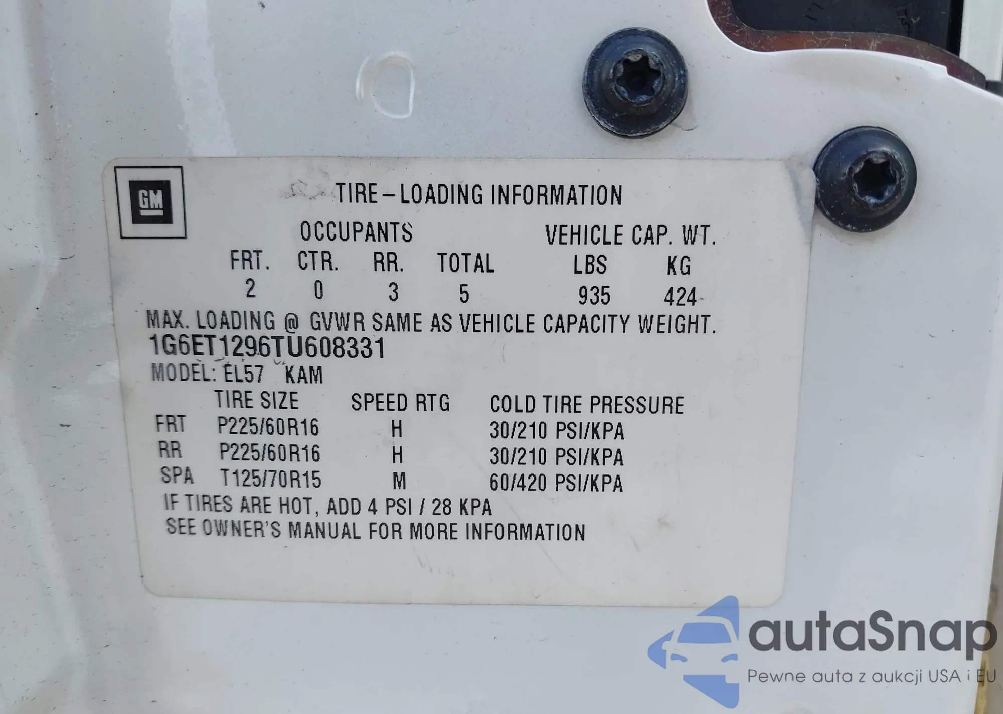 • VIN 1G6ET1296TU608331