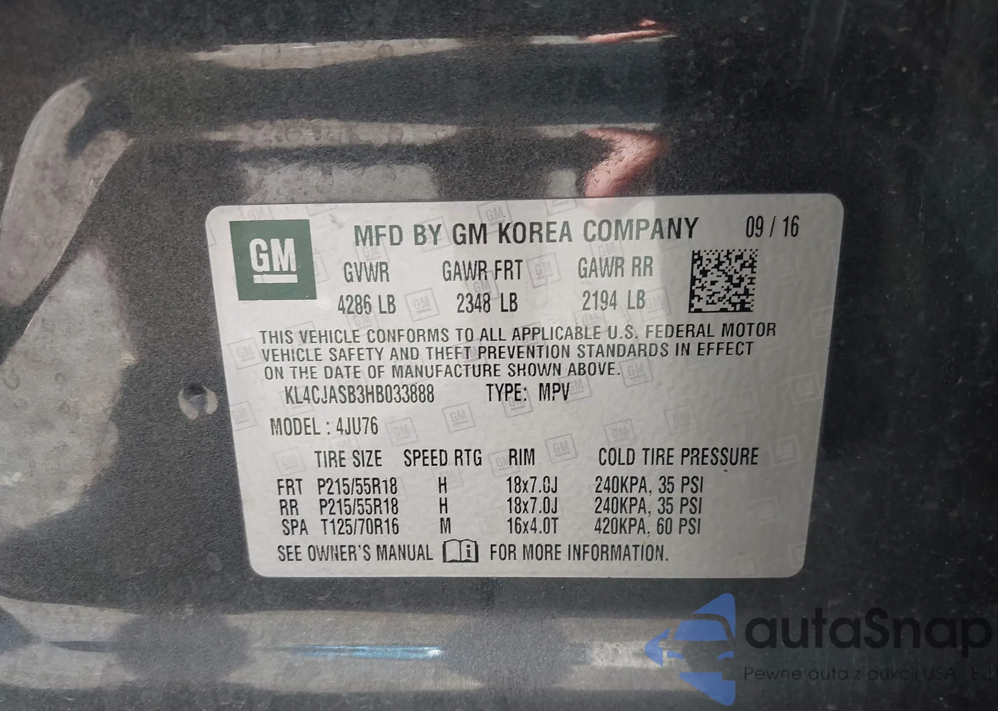 LOT: 42728542 VIN: 2GNFLFEK9H6277366