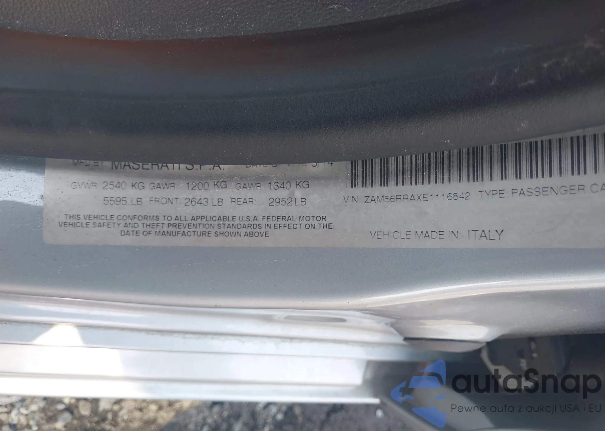 LOT: 42732723 VIN: ZAM56RRAXE1116842
