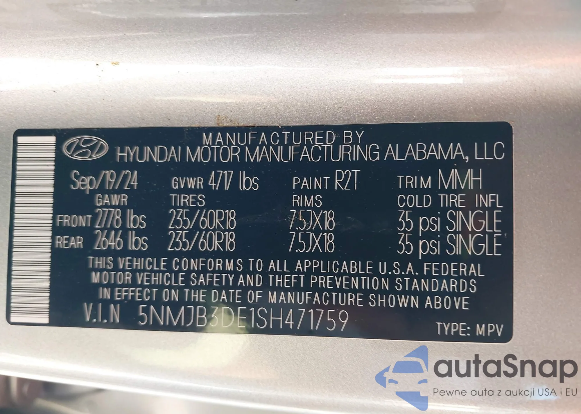 • VIN 5NMJB3DE1SH471759