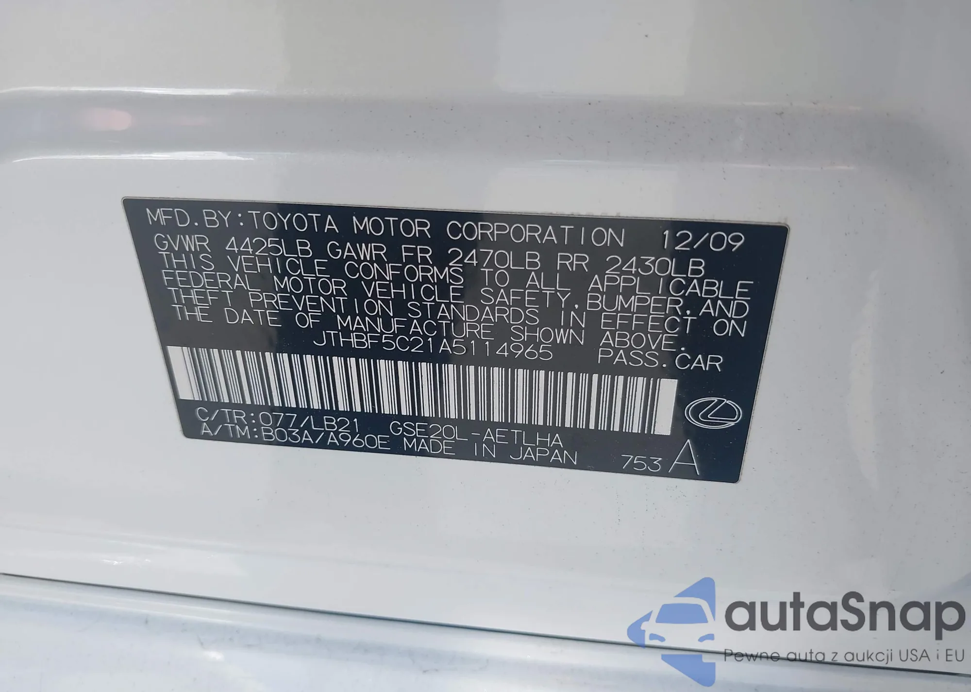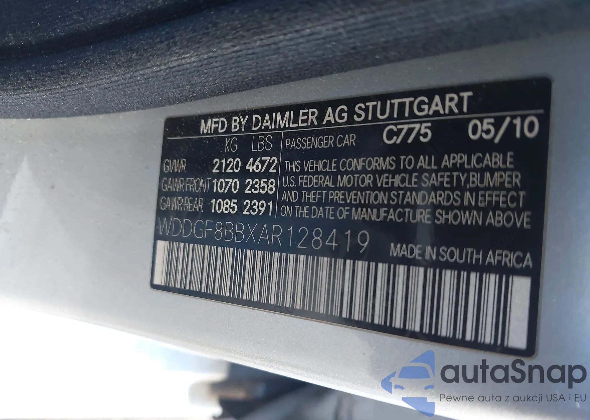 LOT: 43515907 VIN: WDDGF8BBXAR128419