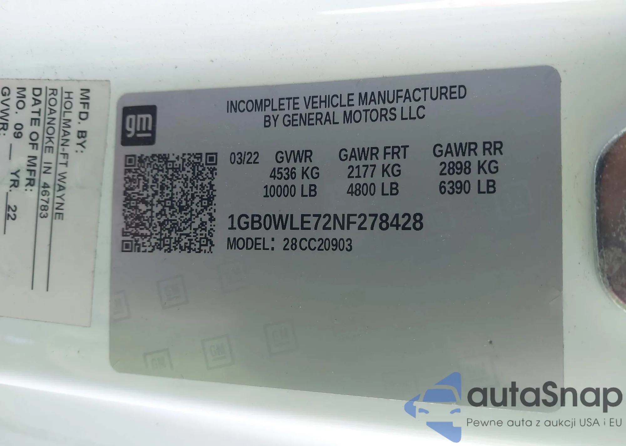• VIN 1GB0WLE72NF278428