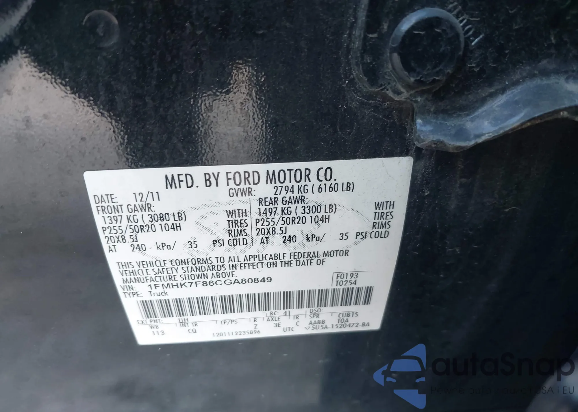 • VIN 1FMHK7F86CGA80849