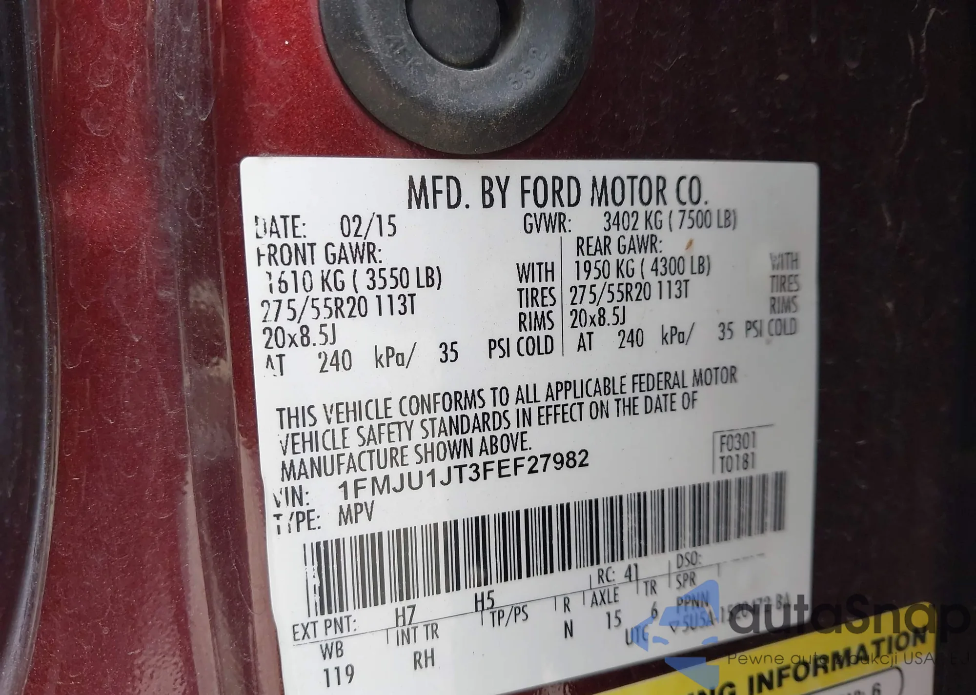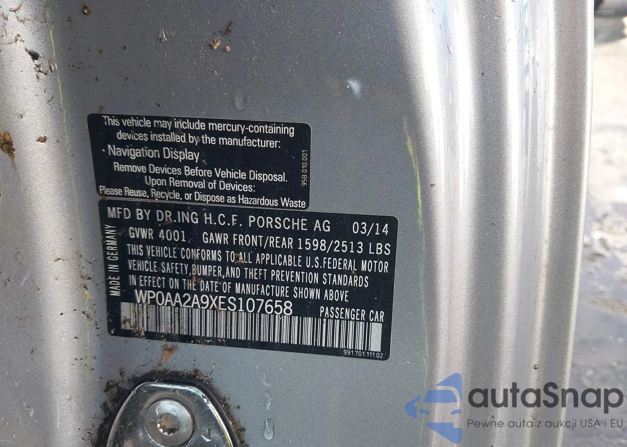 • VIN WP0AA2A9XES107658