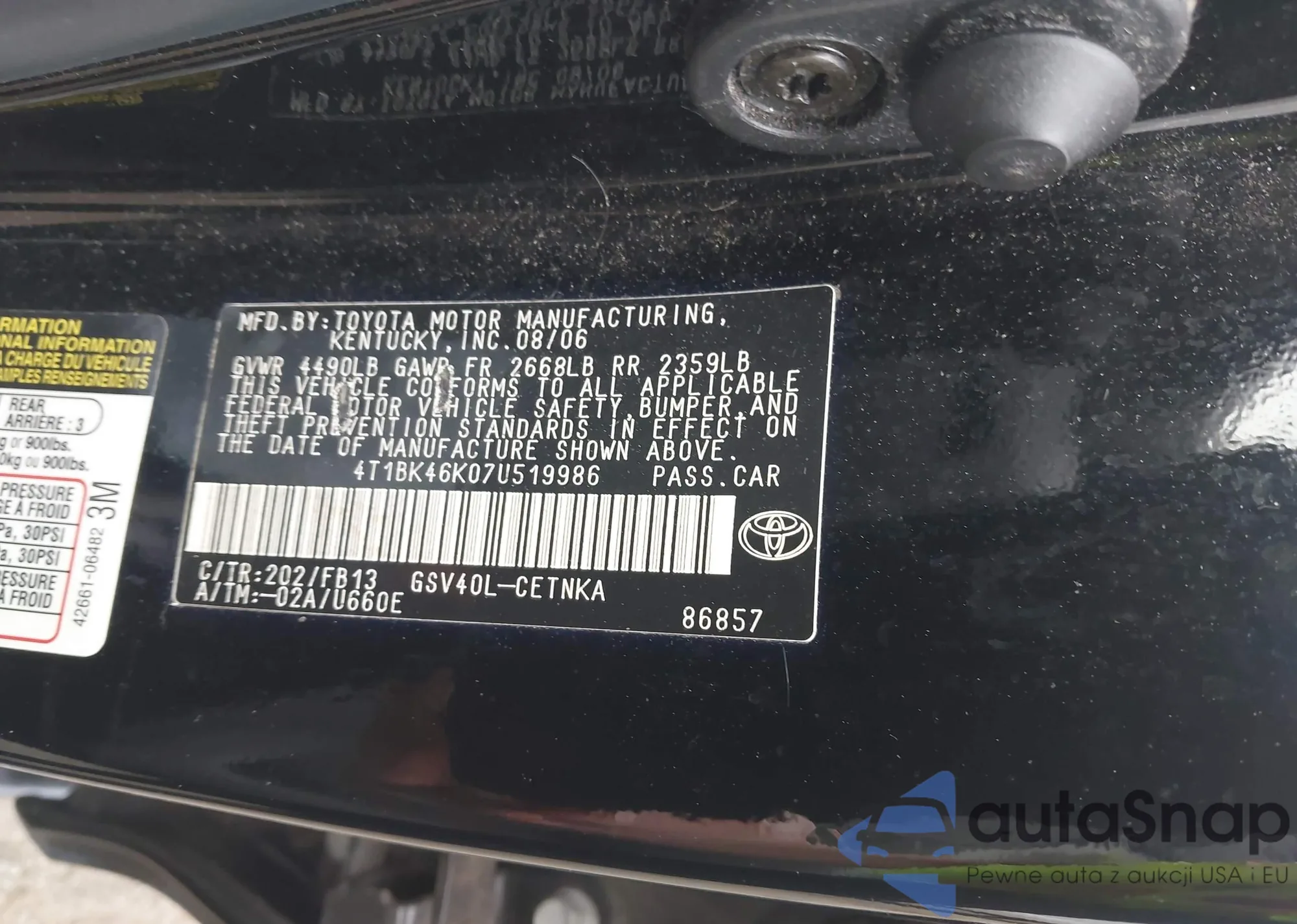 • VIN 4T1BK46K07U579986