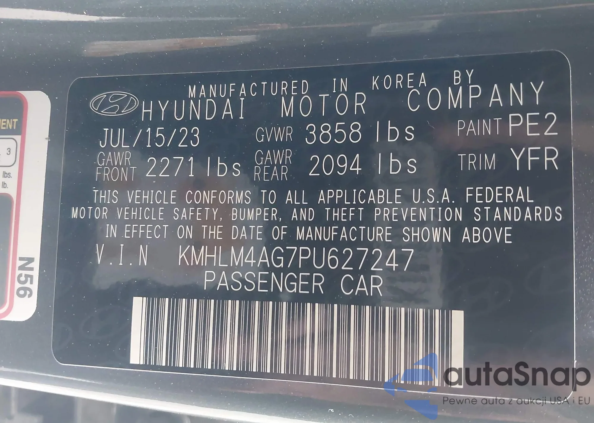 • VIN KMHLM4AG7PU627247