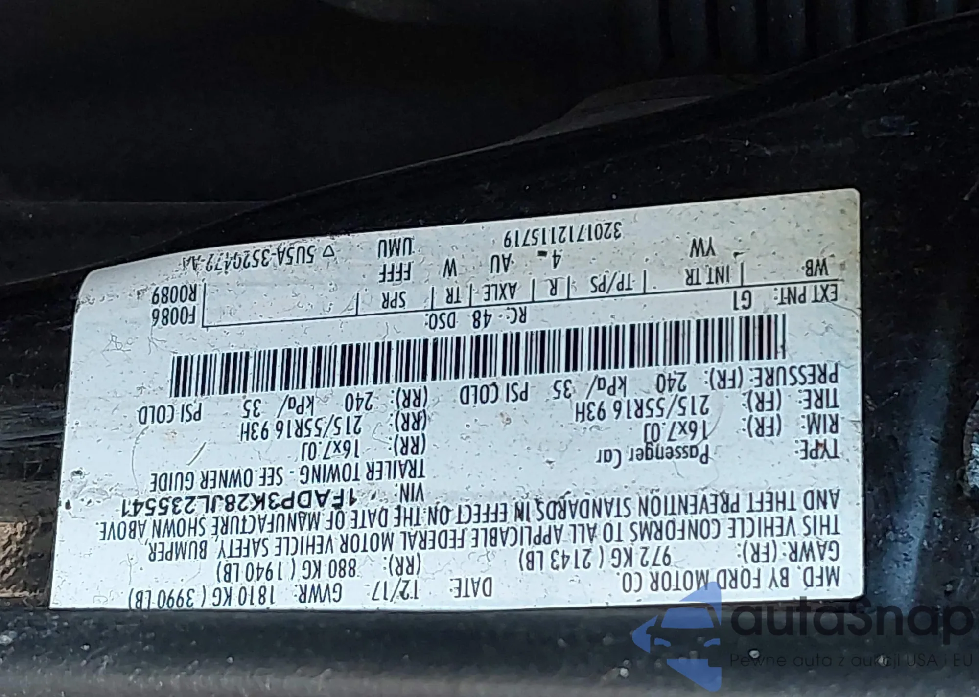 • VIN 5XYK43DF7SG263063