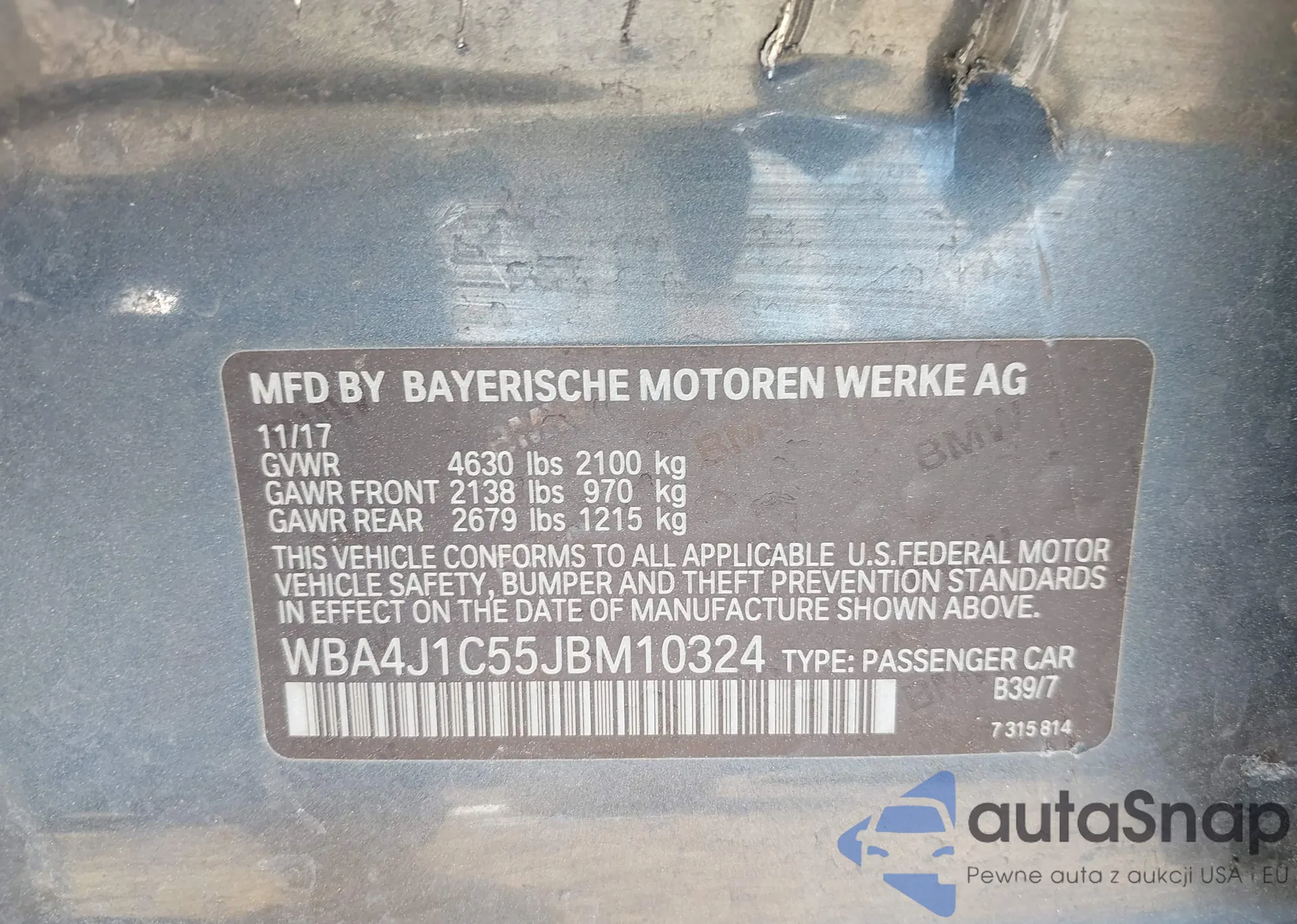 • VIN WBA4J1C55JBM10324