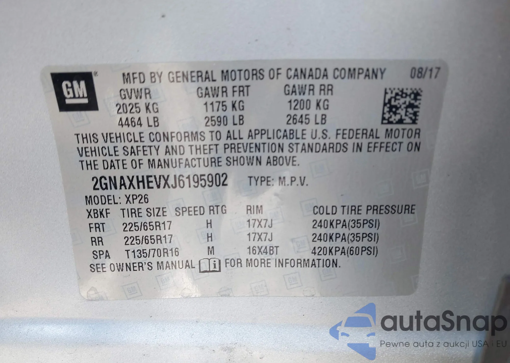 LOT: 43660969 VIN: 1G1RC6S51HU170794