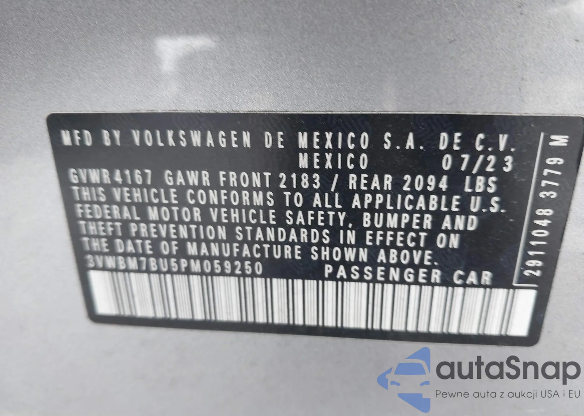LOT: 43244171 VIN: 3VWBM7BU5PM059250