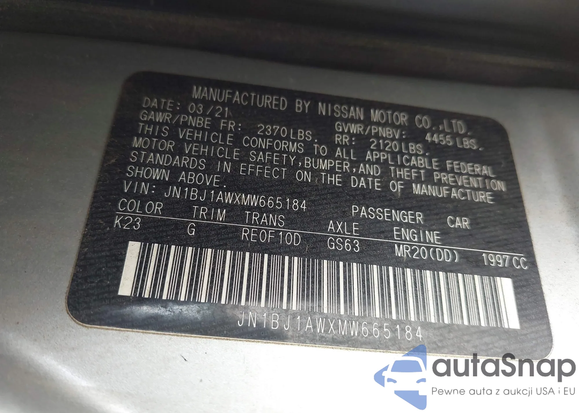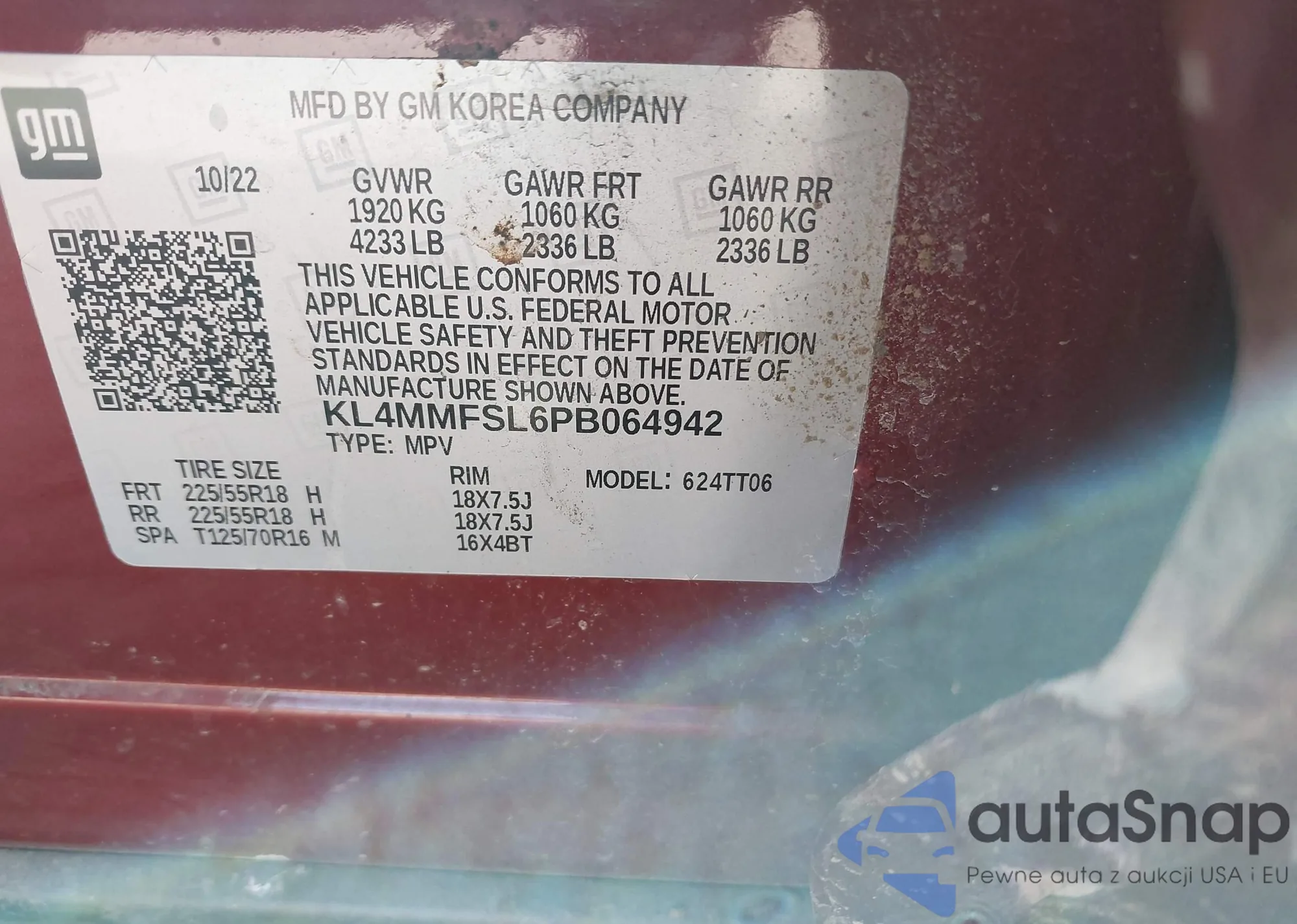 • VIN KL4MMFSL6PB064942