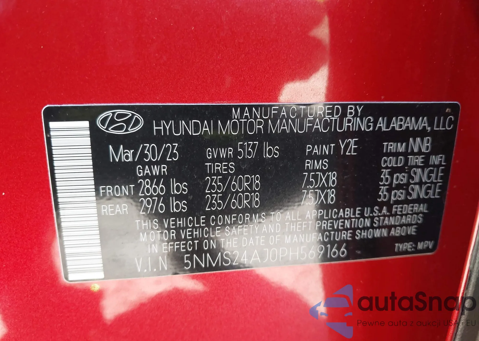 • VIN 5NMS24AJ0PH569166