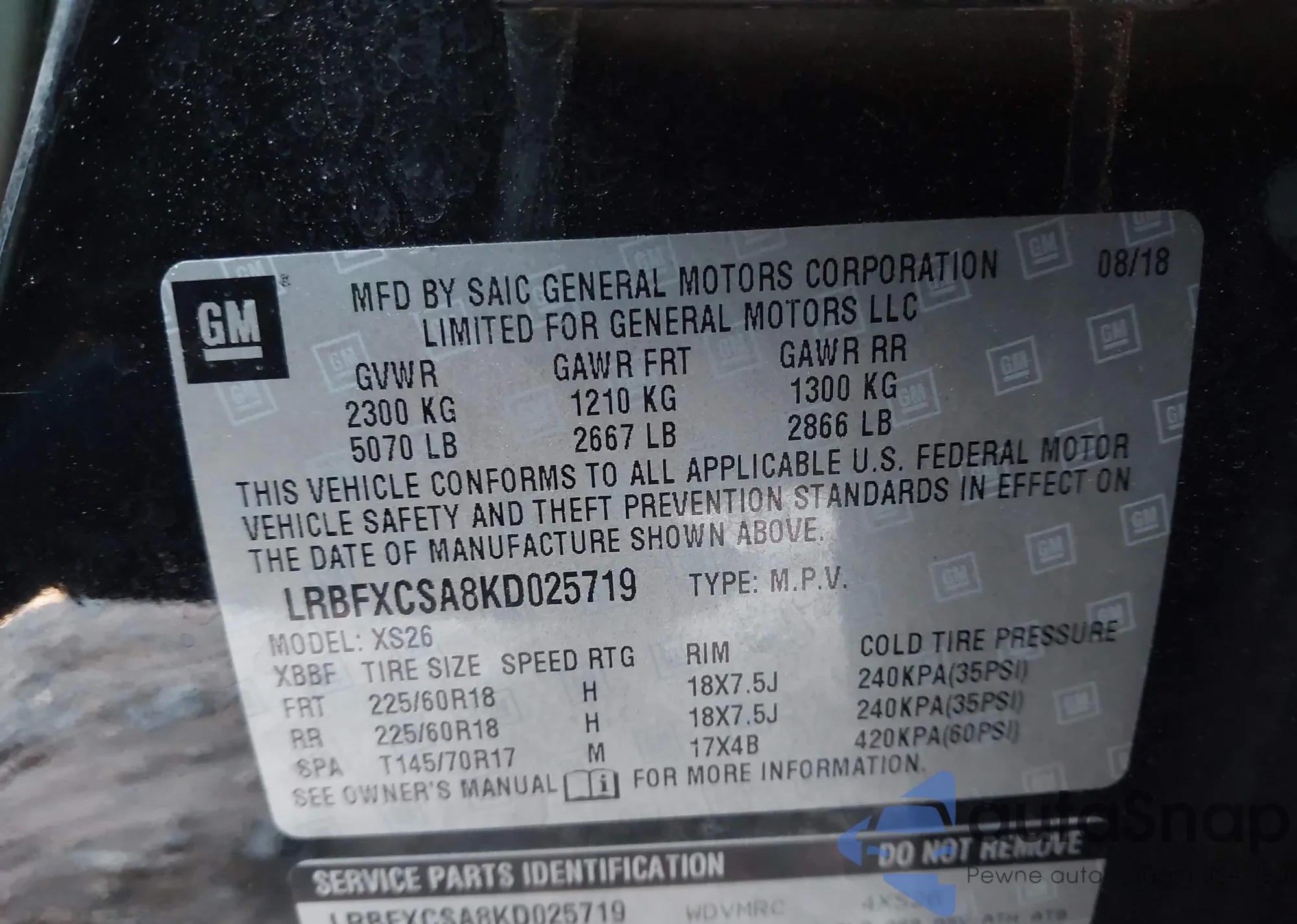 • VIN LRBFXCSA8KD025719