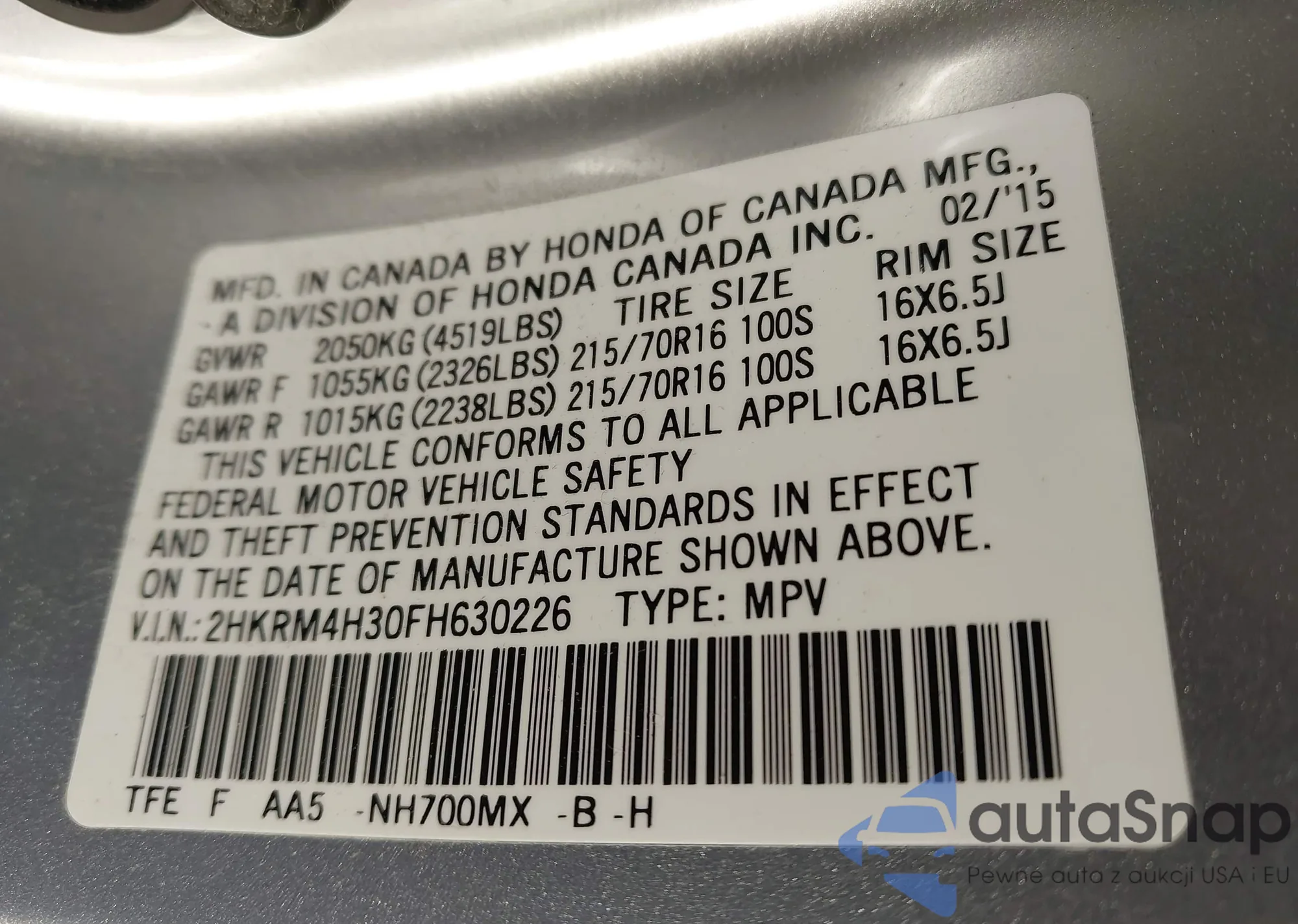 LOT: 43670725 VIN: KL79MPS27PB033415