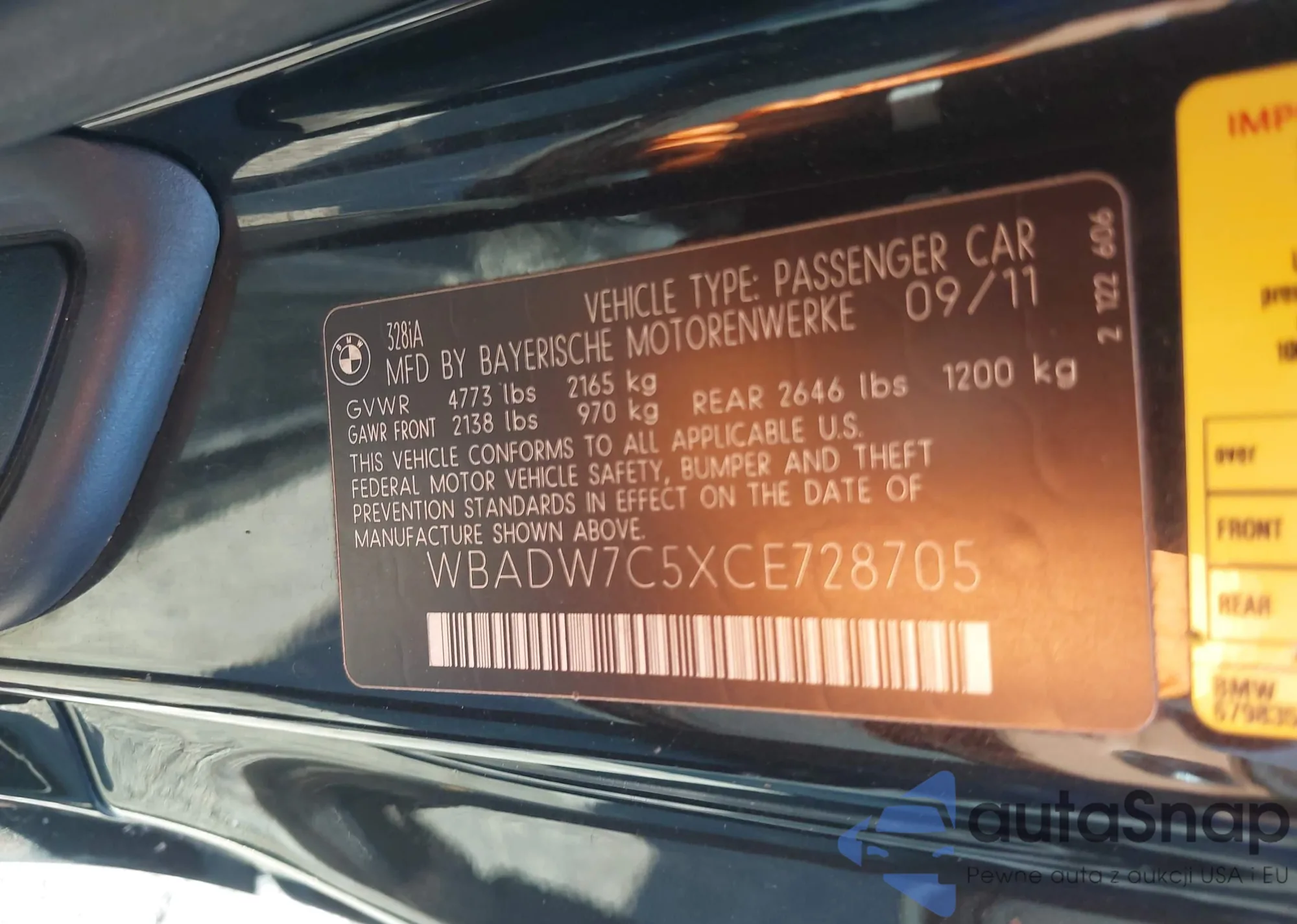 2012 BMW 328I z USA, uszkodzony, nr VIN WBADW7C5XCE728705