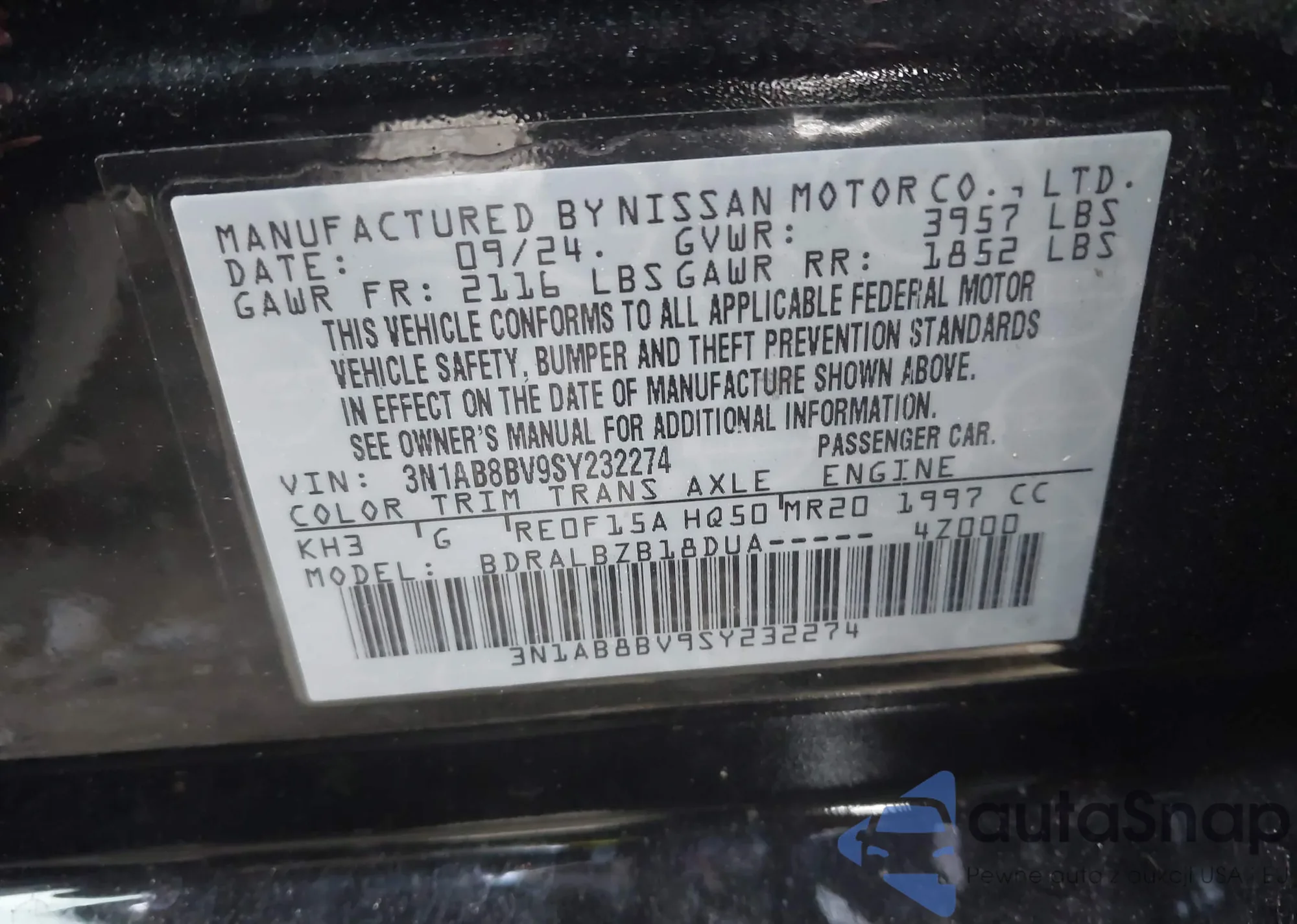 • VIN 1N4AL3APXDC909883