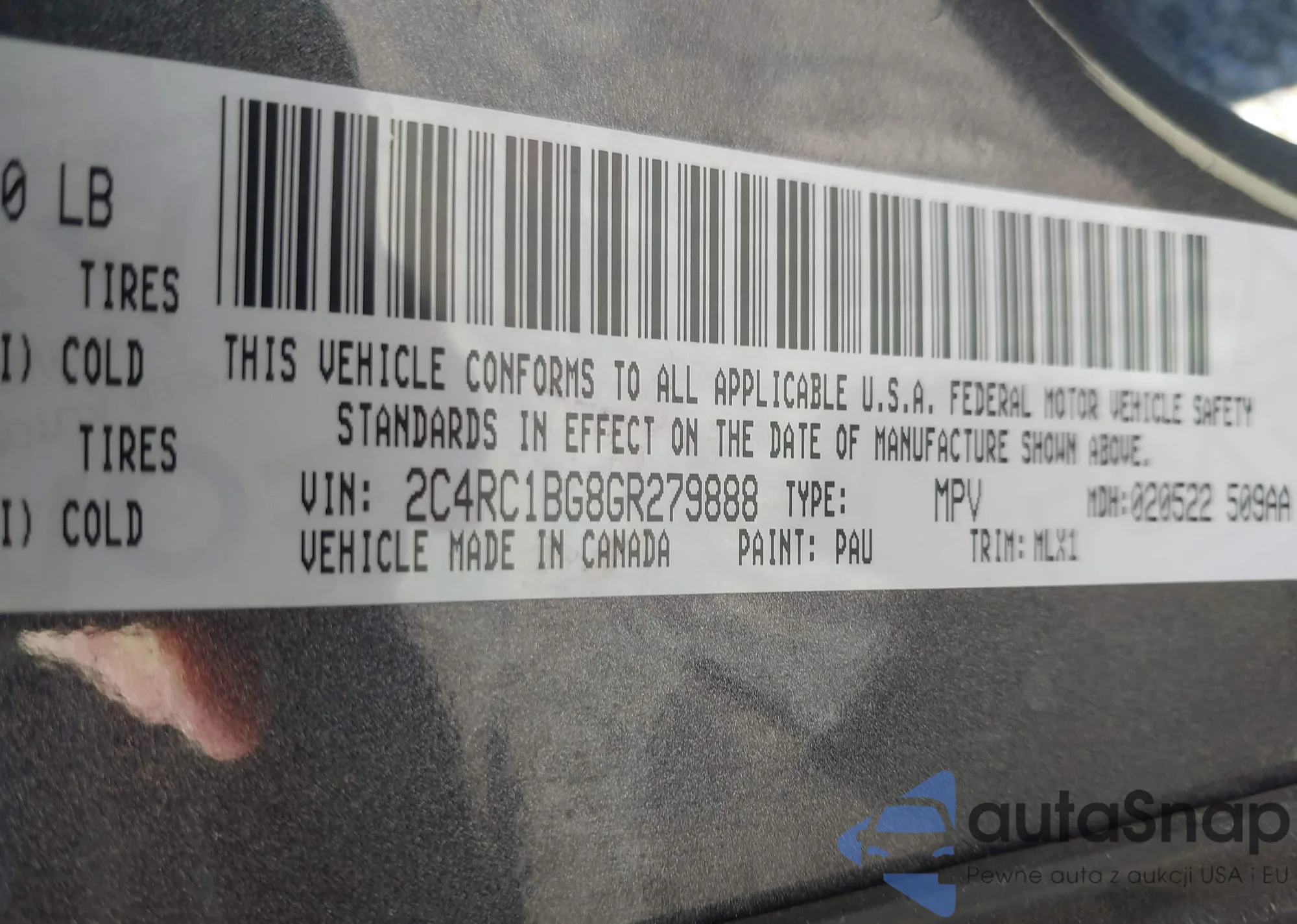 • VIN 2C4RC1BG8GR279888