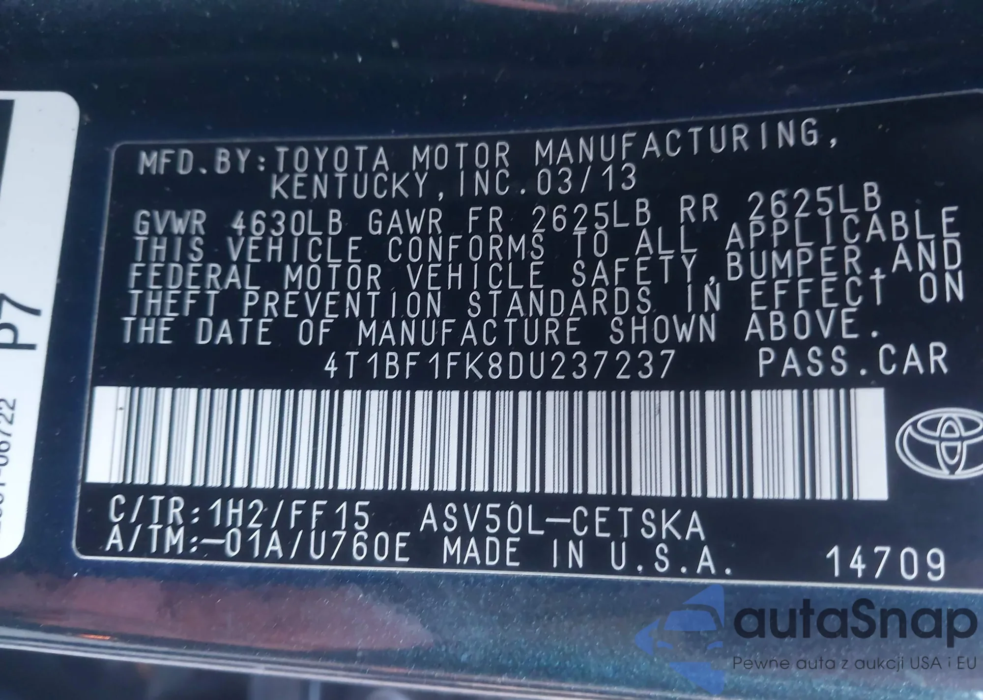 • VIN 5TFNA5DB4NX025817