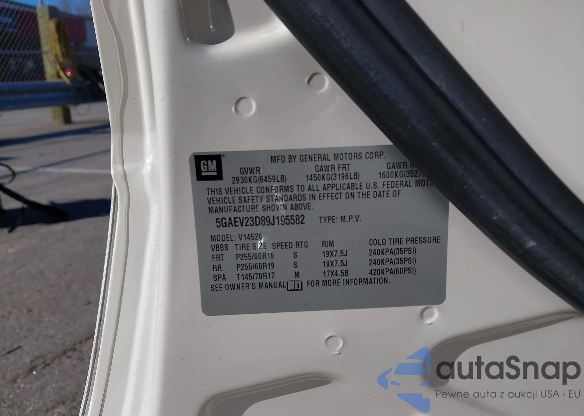 LOT: 43595019 VIN: 5GAEV23D89J195582