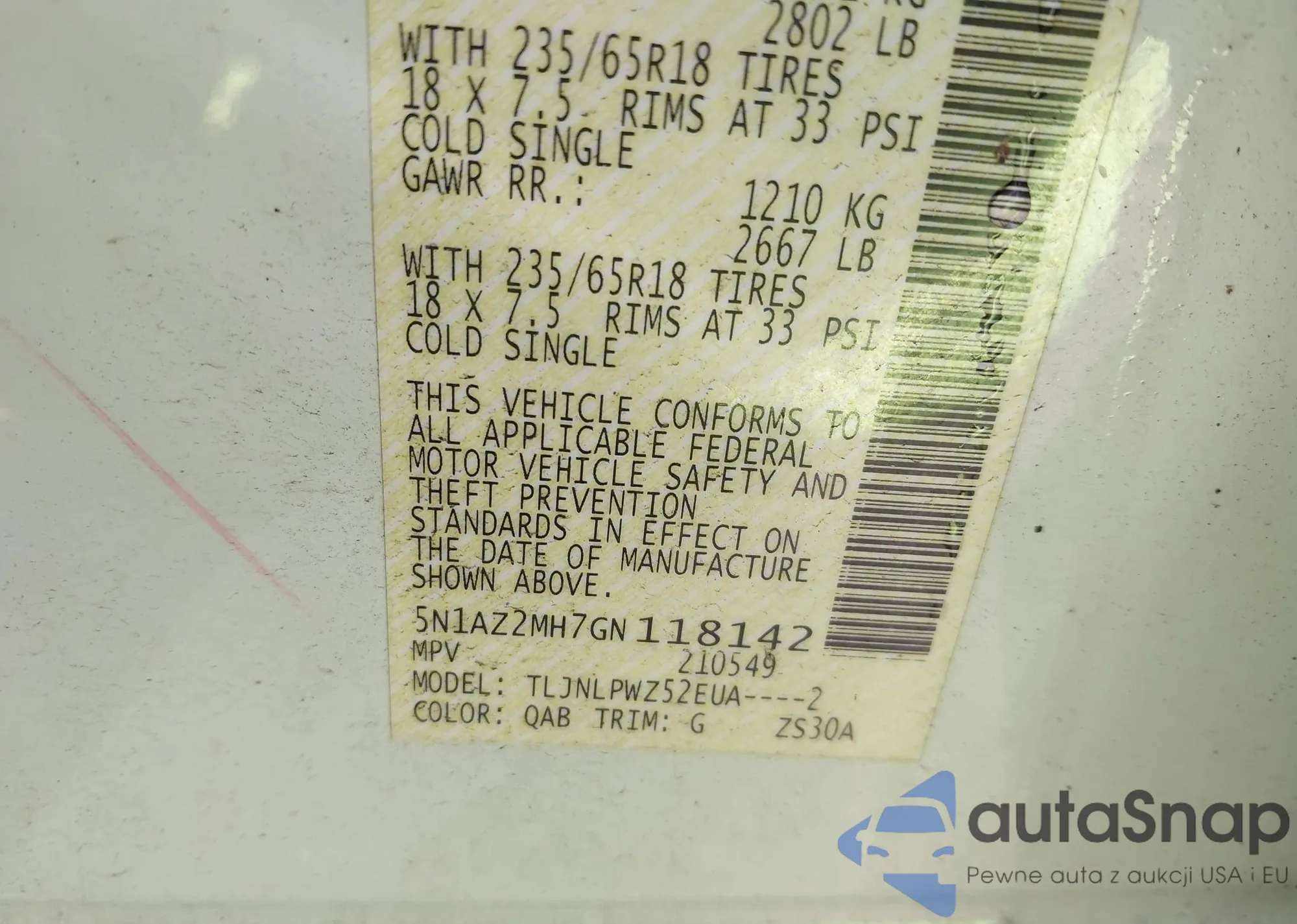 • VIN 5N1AZ2MH7GN118142