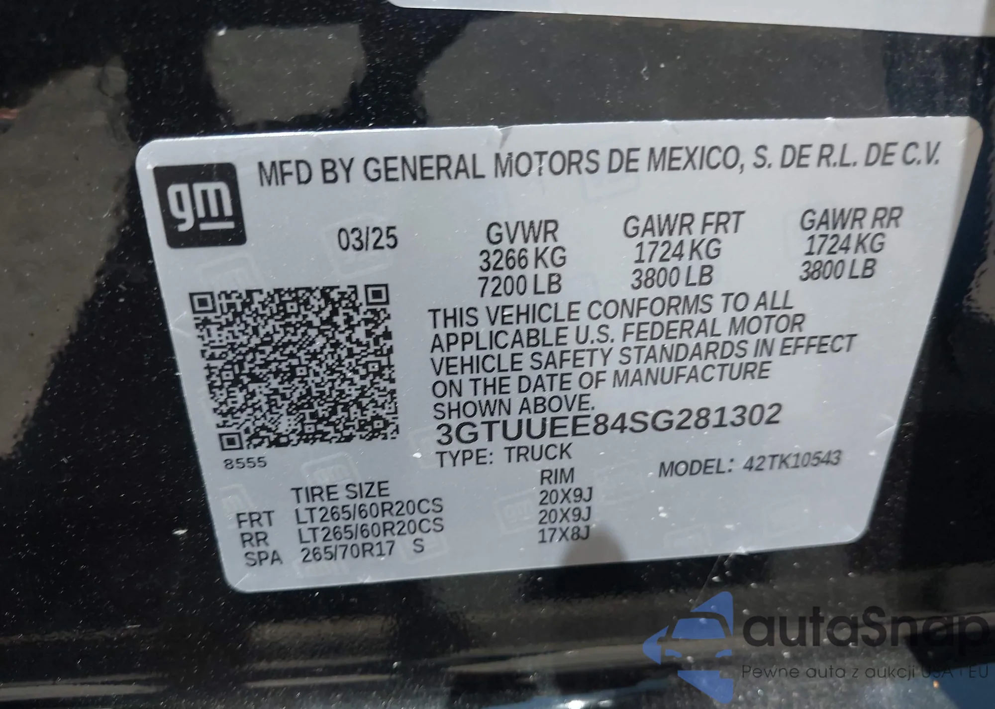 LOT: 43138725 VIN: 3GTUUEE84SG281302