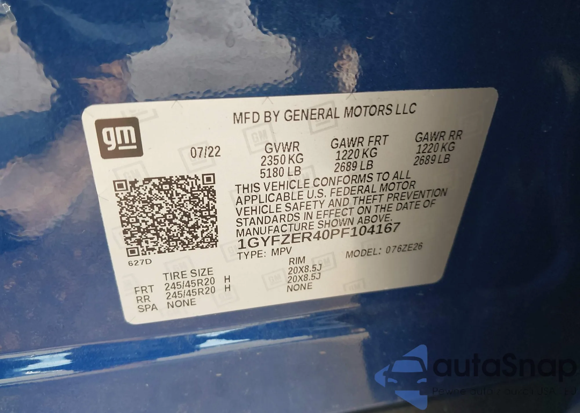 • VIN 1GYFZER40PF104167
