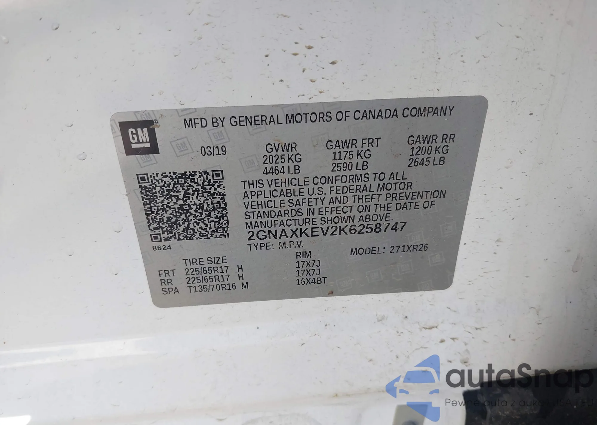 • VIN 2GNAXKEV2K6258747