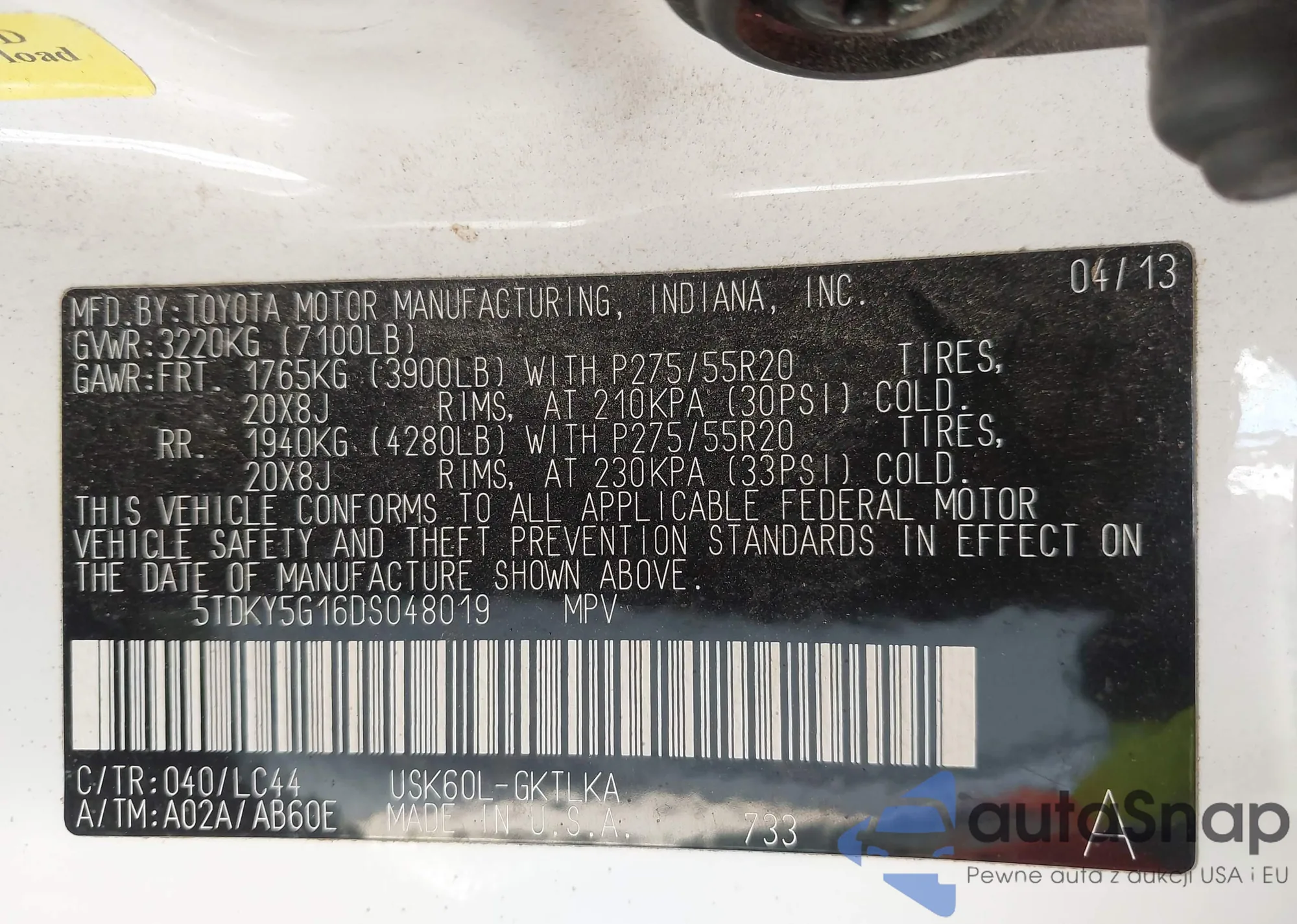 LOT: 43672062 VIN: KMHTC6AE2DU118353