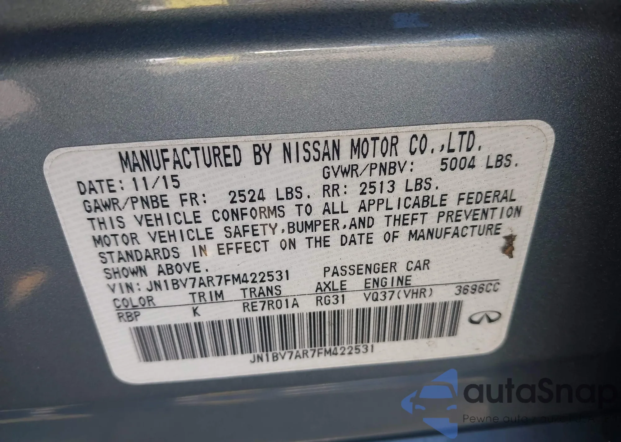 LOT: 42500151 VIN: 1VWAT7A36FC060267