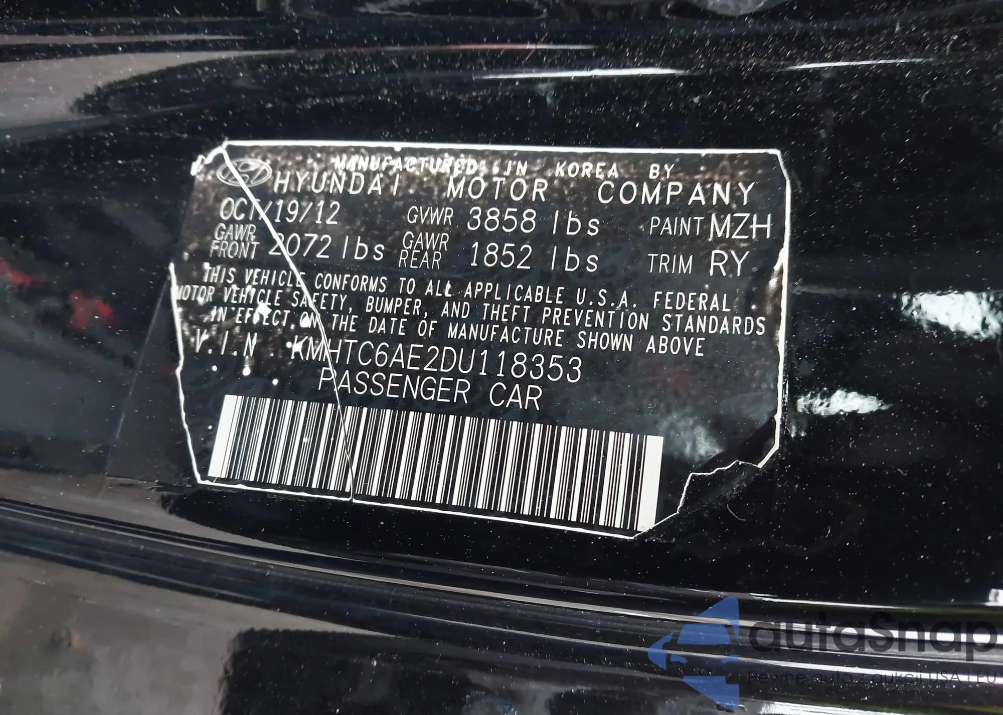 • VIN KMHTC6AE2DU118353