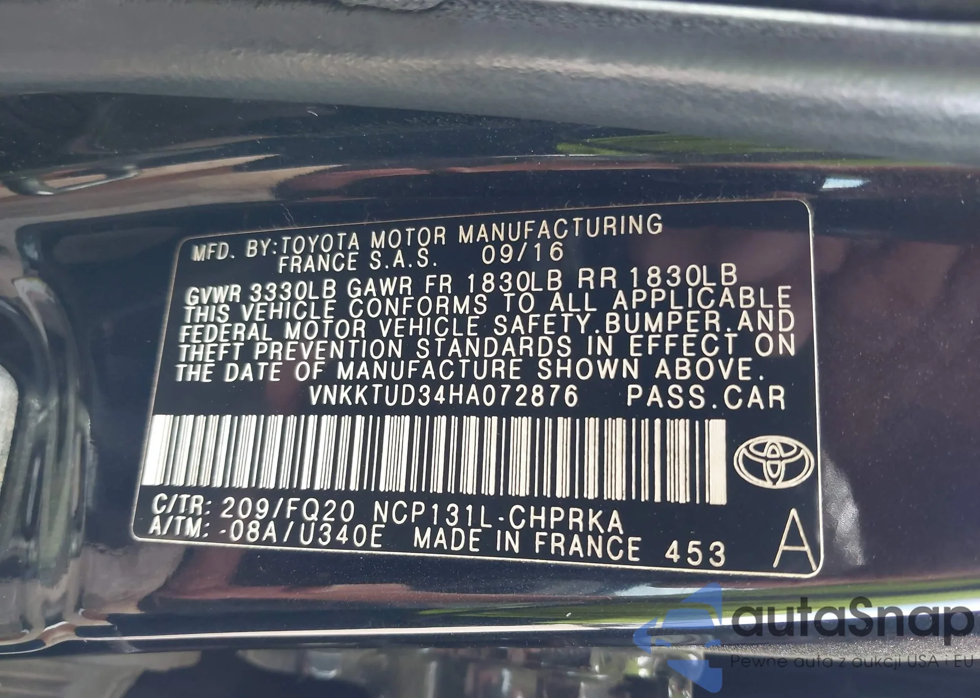 LOT: 43377479 VIN: VNKKTUD34HA072876