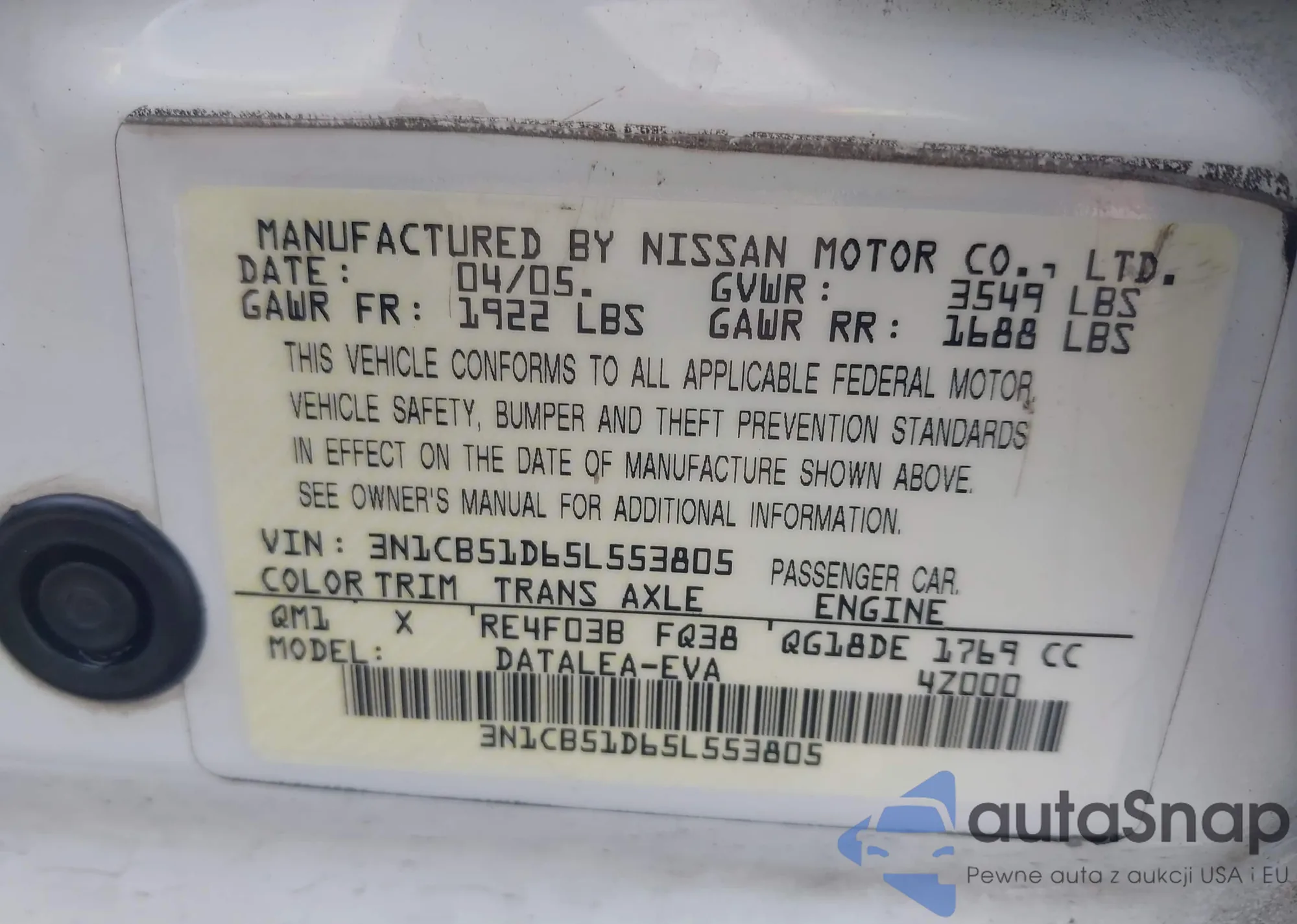 • VIN 4T4BF1FK1DR281618