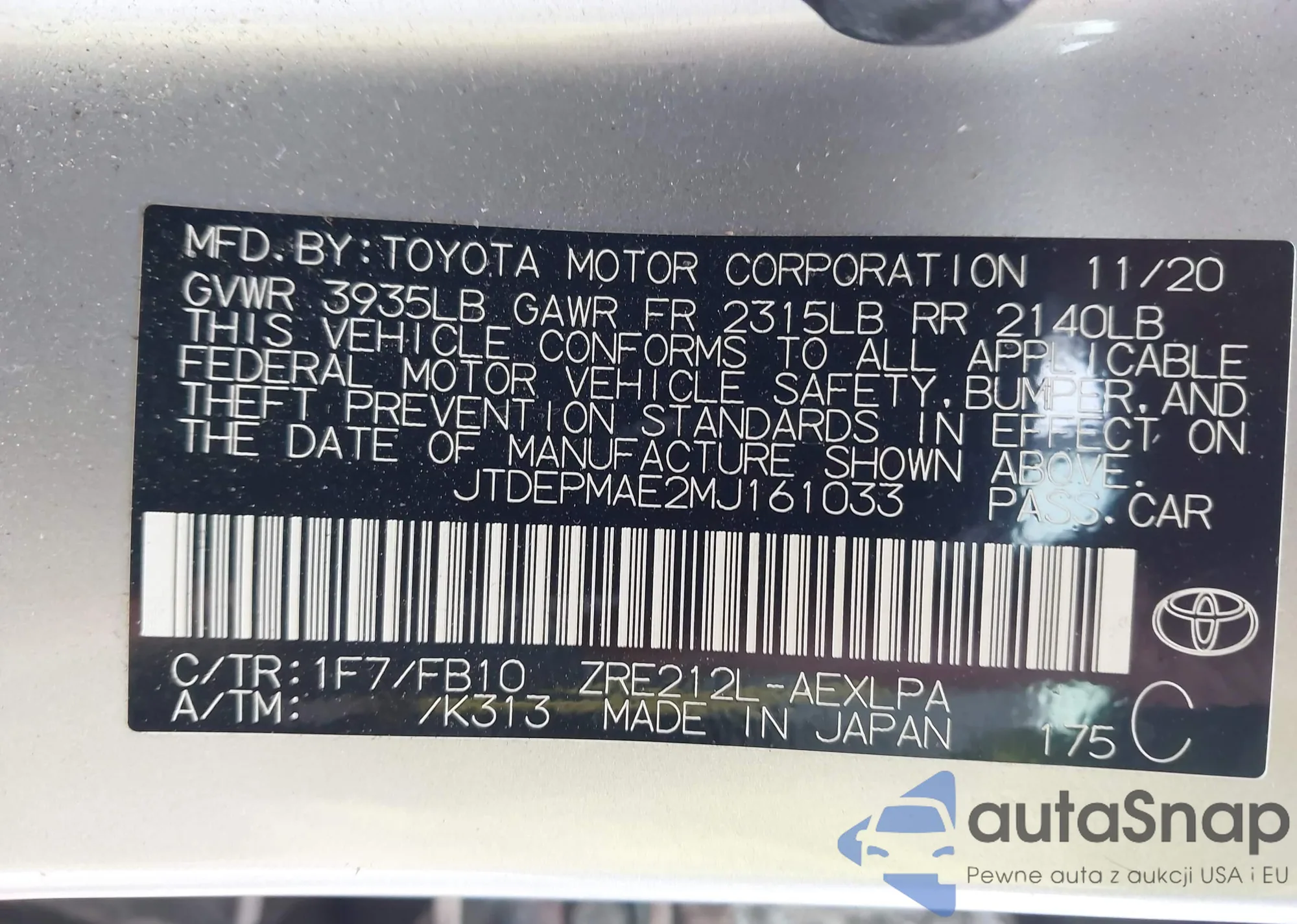 • VIN JTDEPMAE2MJ161033
