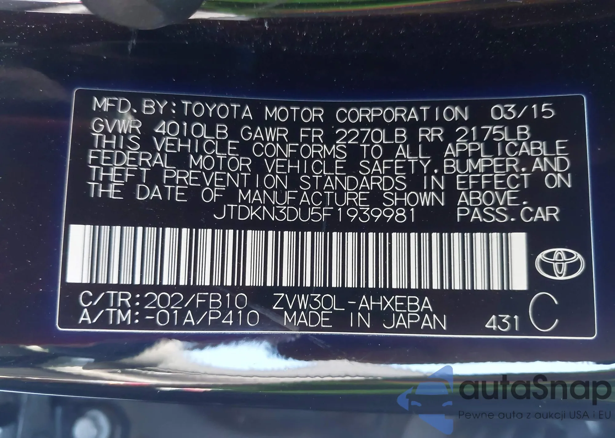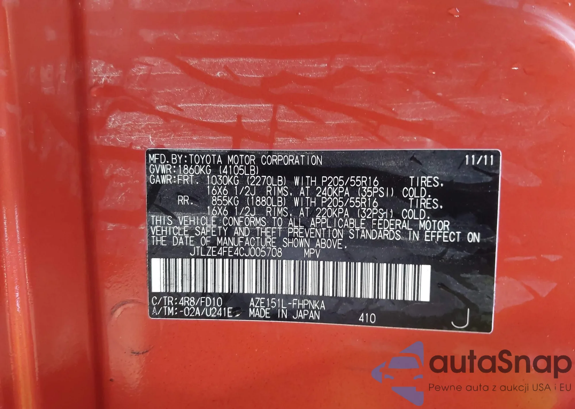 LOT: 43662714 VIN: JTMBF4DV7AD038016