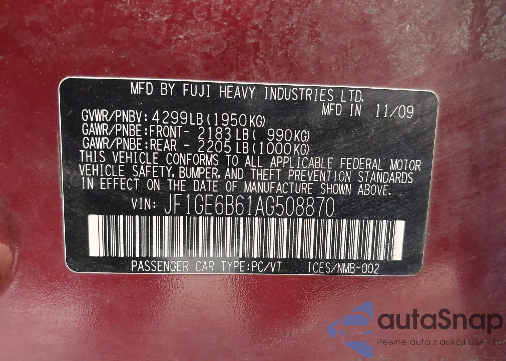 • VIN JF1GE6B61AG508870