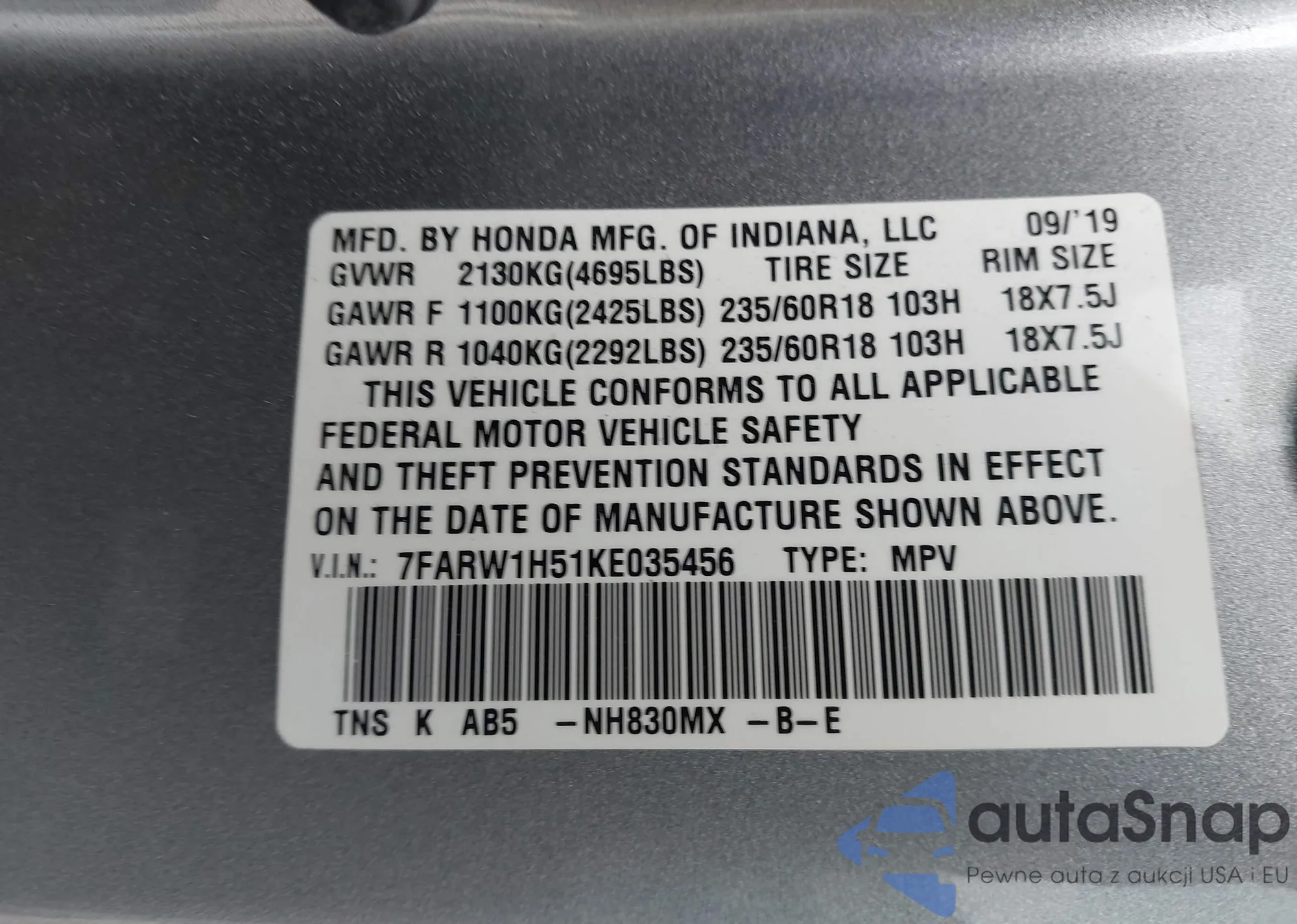 • VIN 7FARW1H51KE035456
