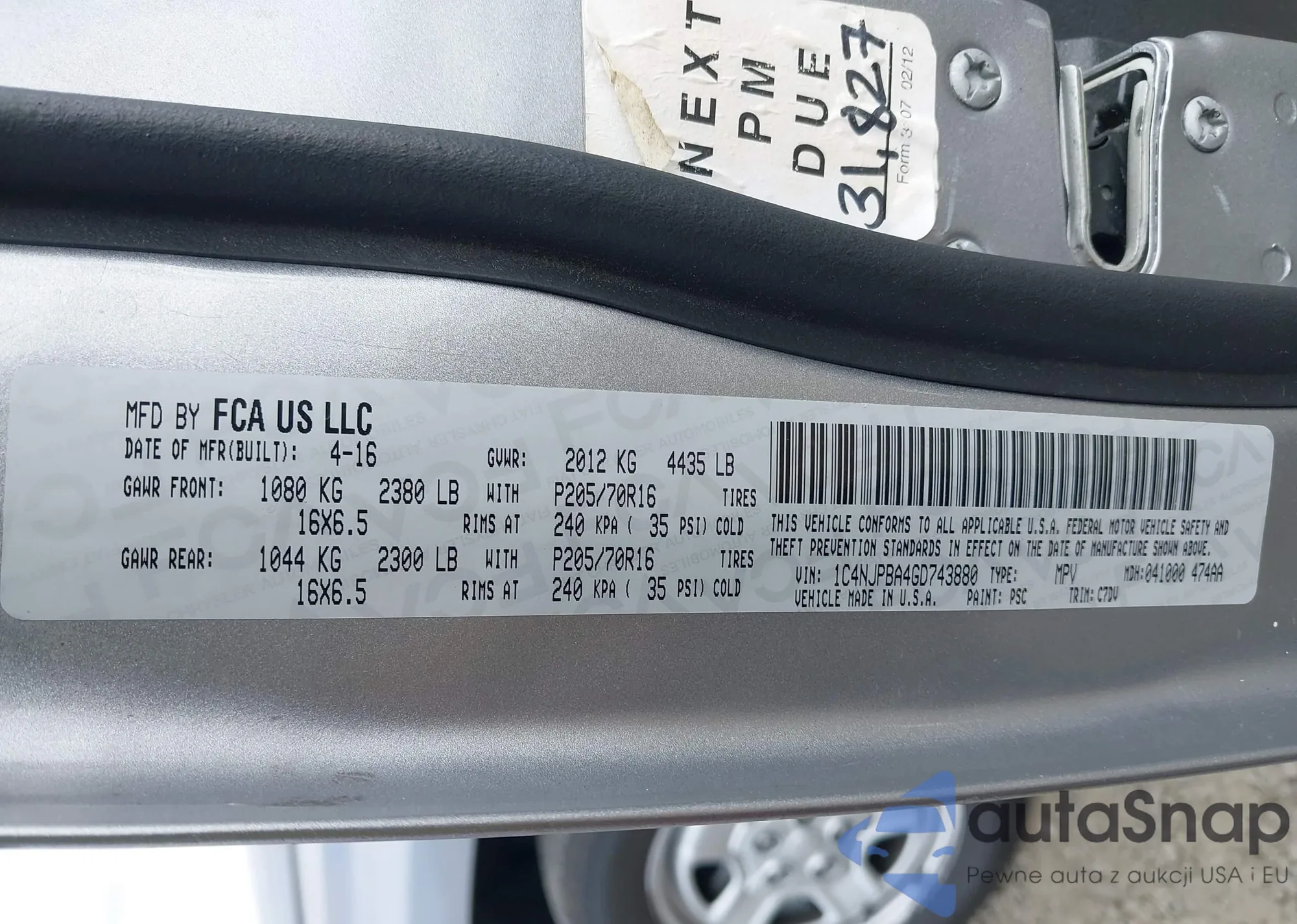 LOT: 40350335 VIN: 1C4NJPBA4GD743880