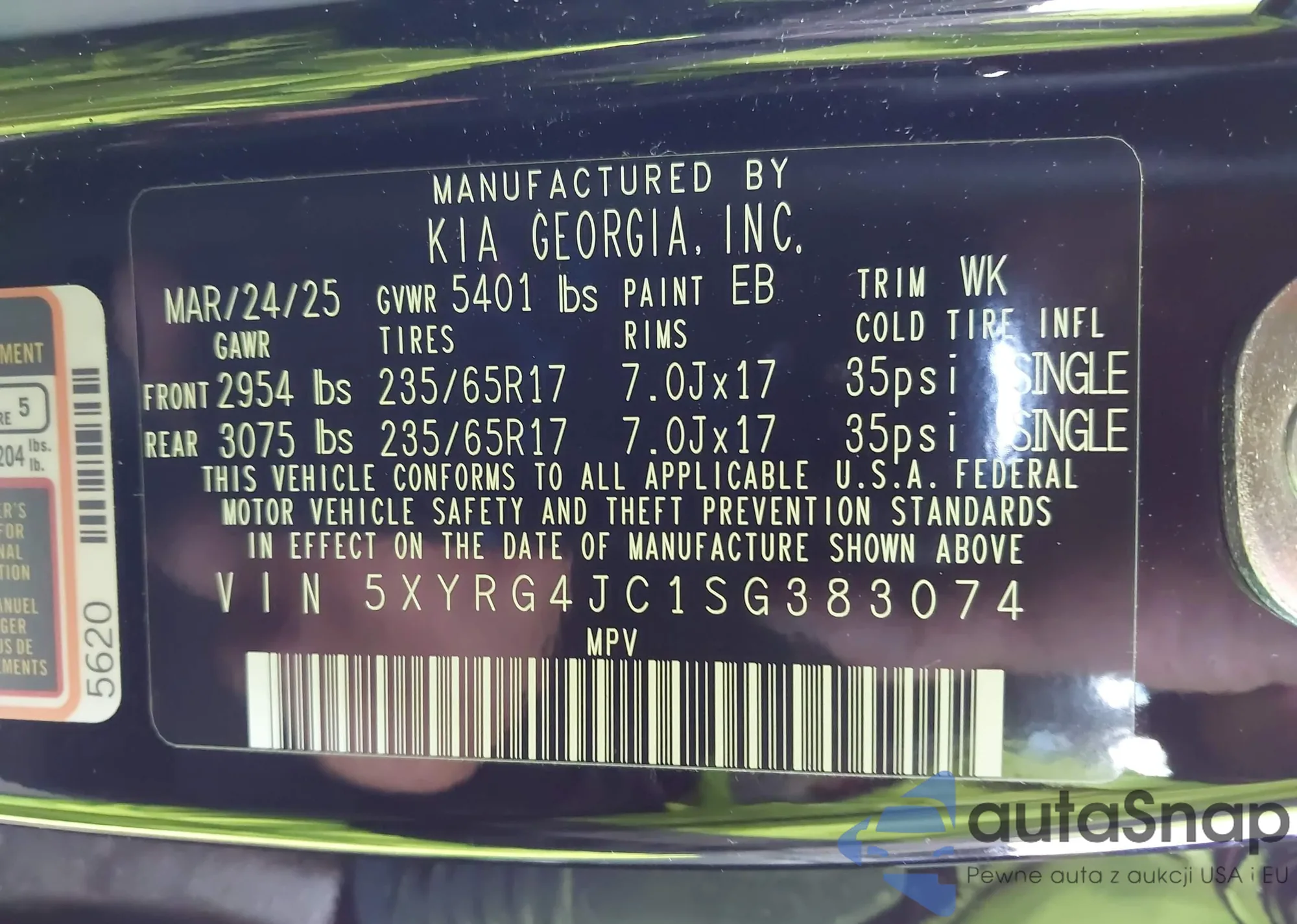 • VIN 5XYRG4JC1SG383074