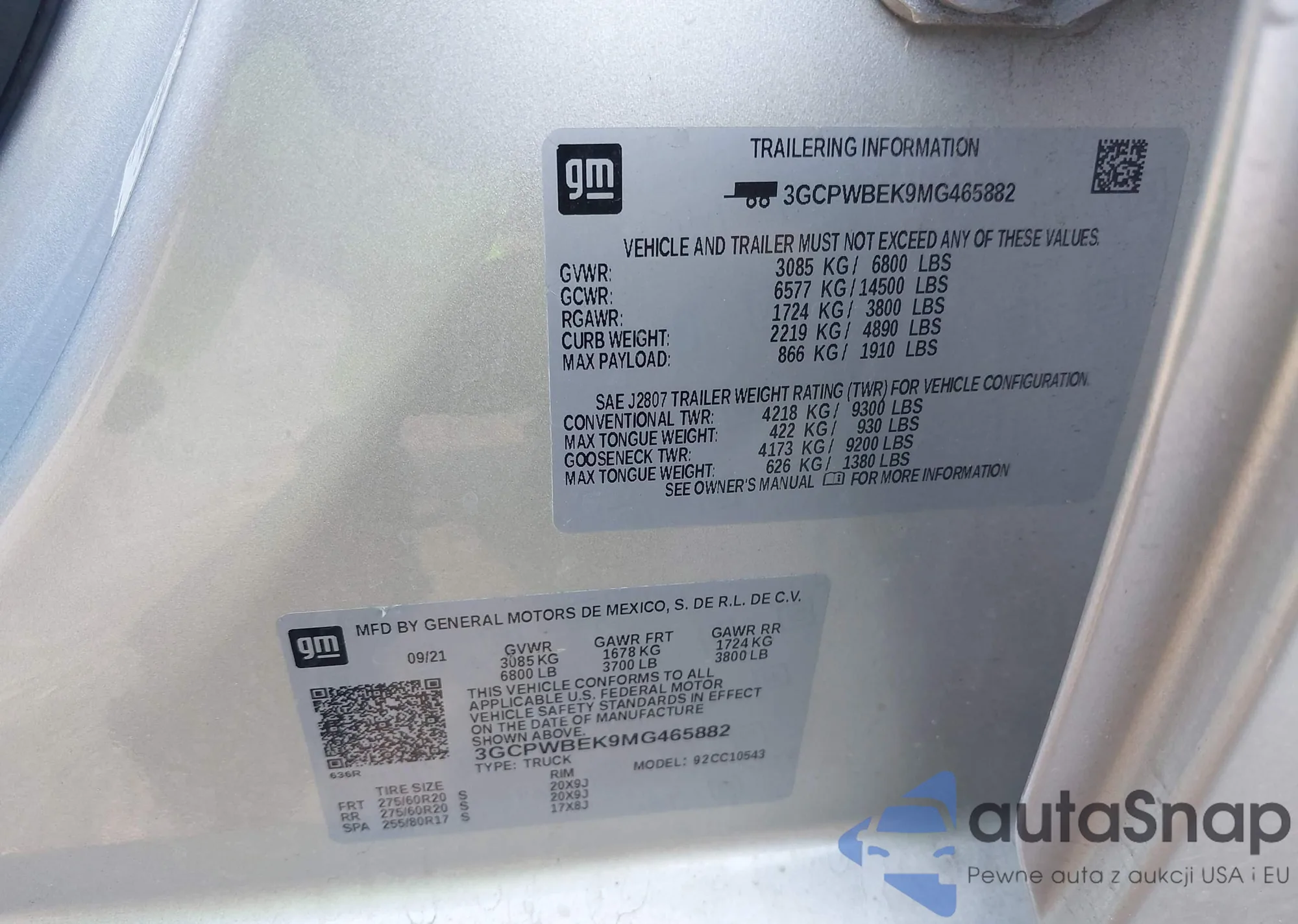 LOT: 43671212 VIN: 1GCPYFEL1MZ153369