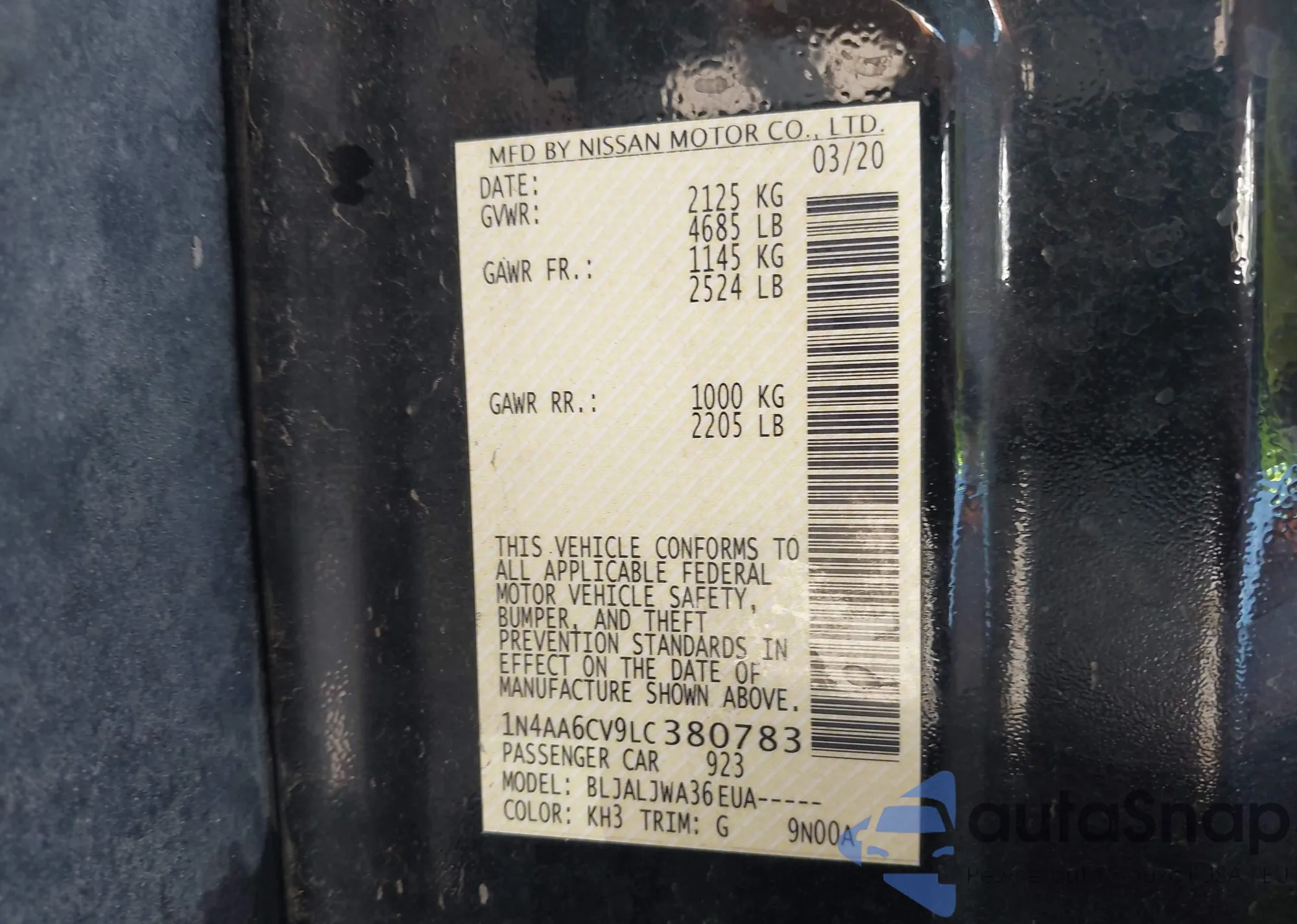 • VIN 1N4AA6CV9LC380783
