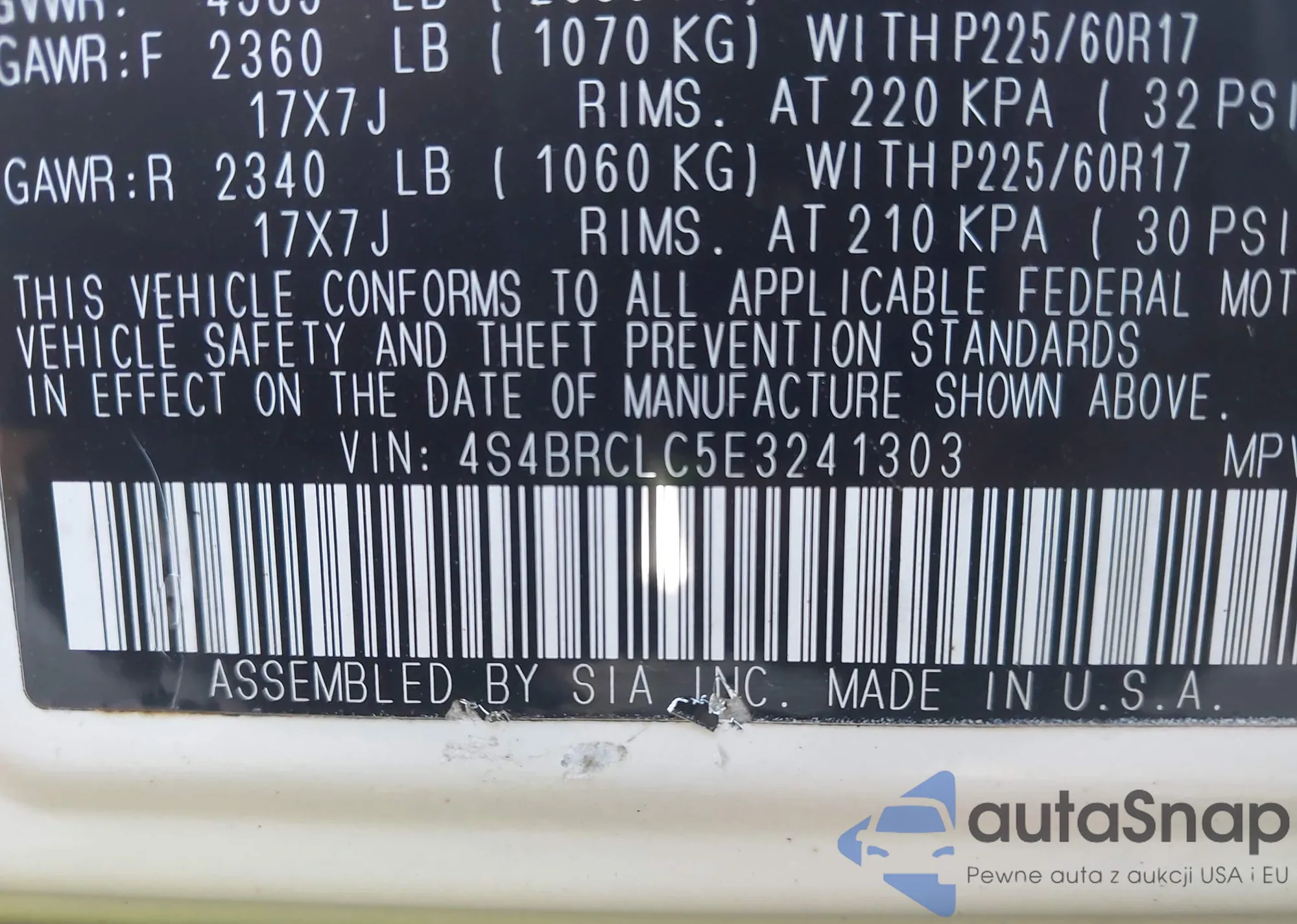• VIN 4S4BRCLC5E3241303