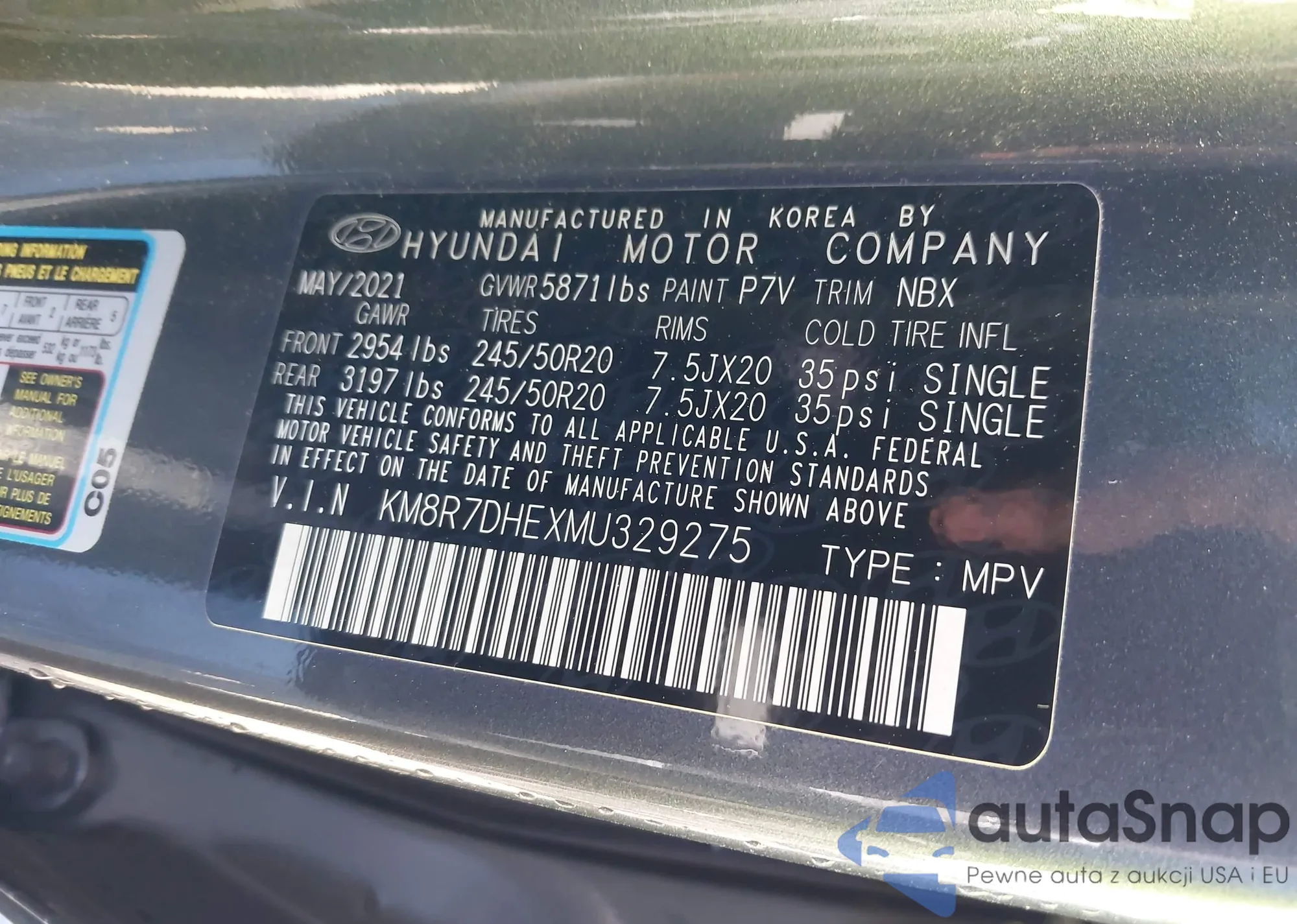 LOT: 43489131 VIN: KM8R7DHEXMU329275