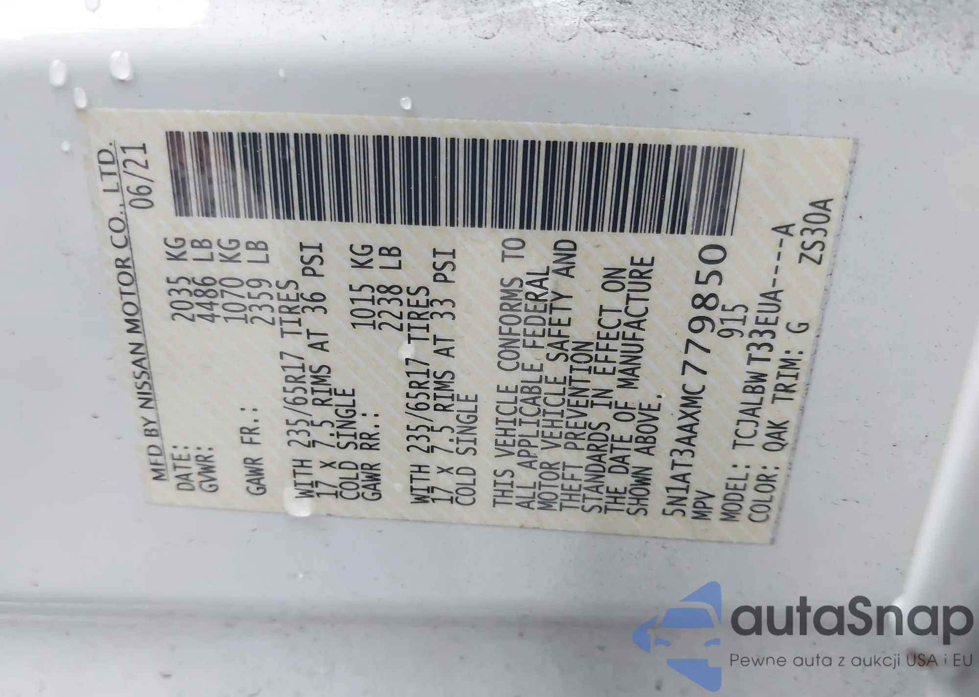 • VIN 5YJ3E1EA5JF061059
