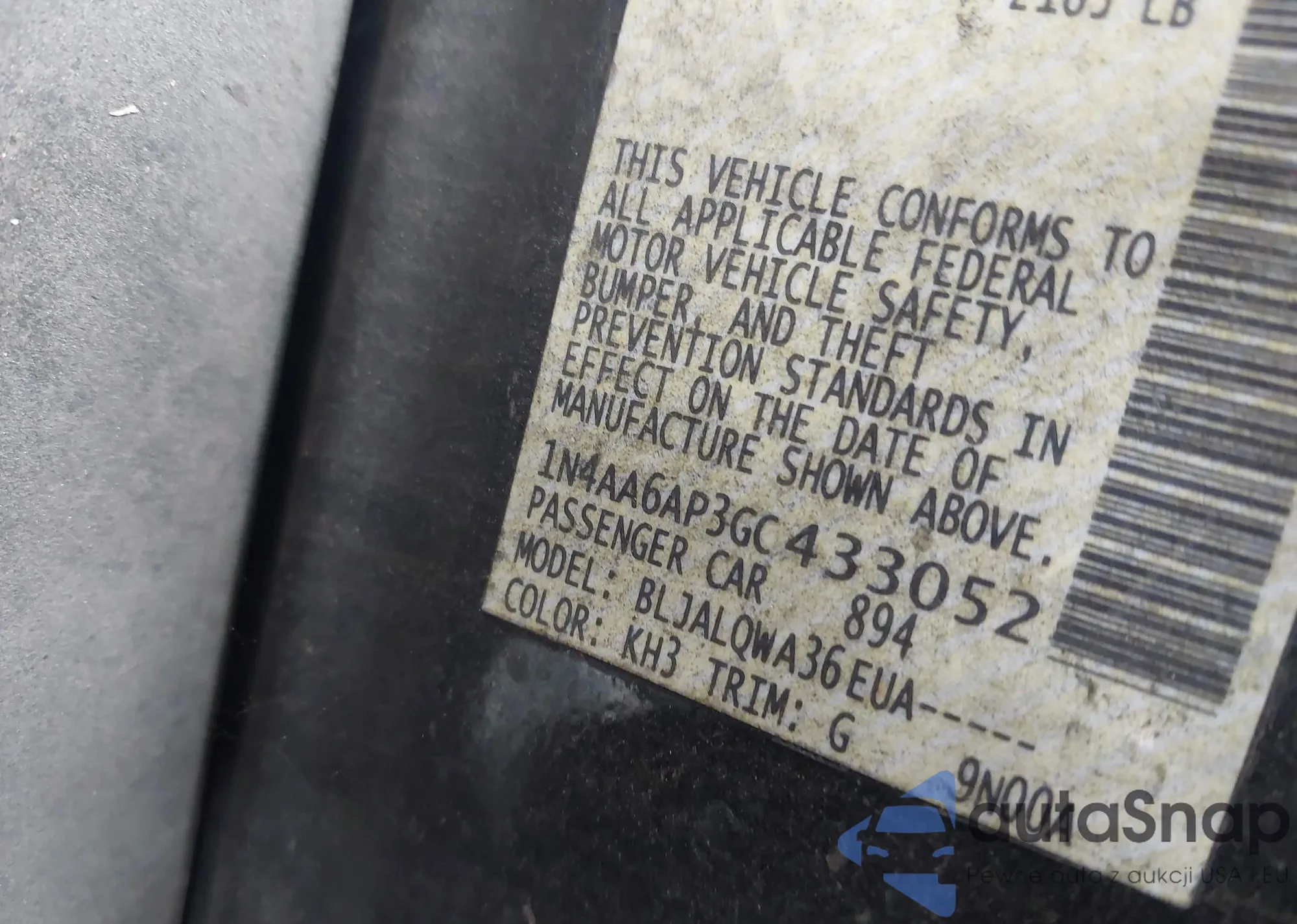• VIN 1N4AA6AP3GC433052