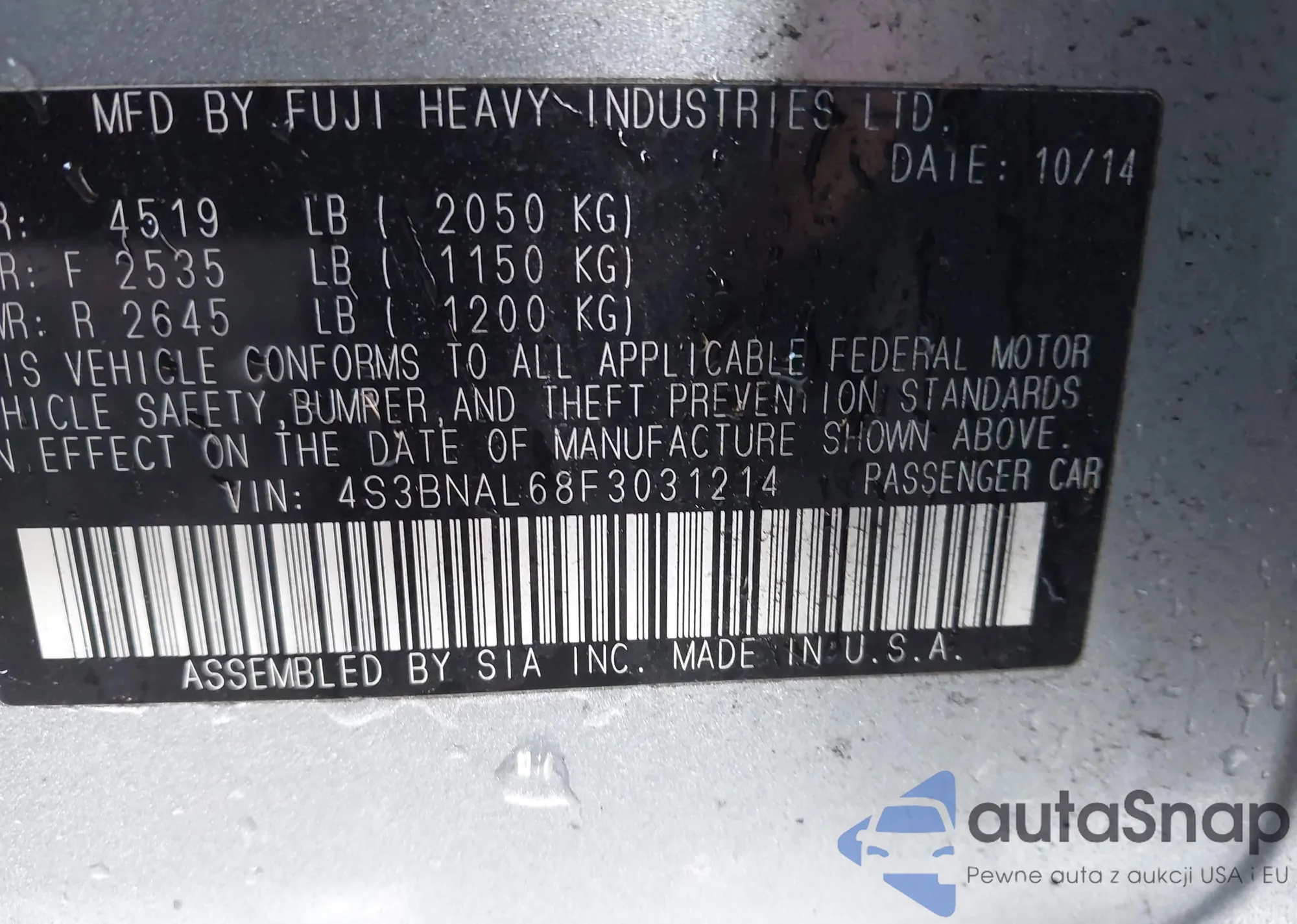 LOT: 43741139 VIN: JA32U2FU6FU006839