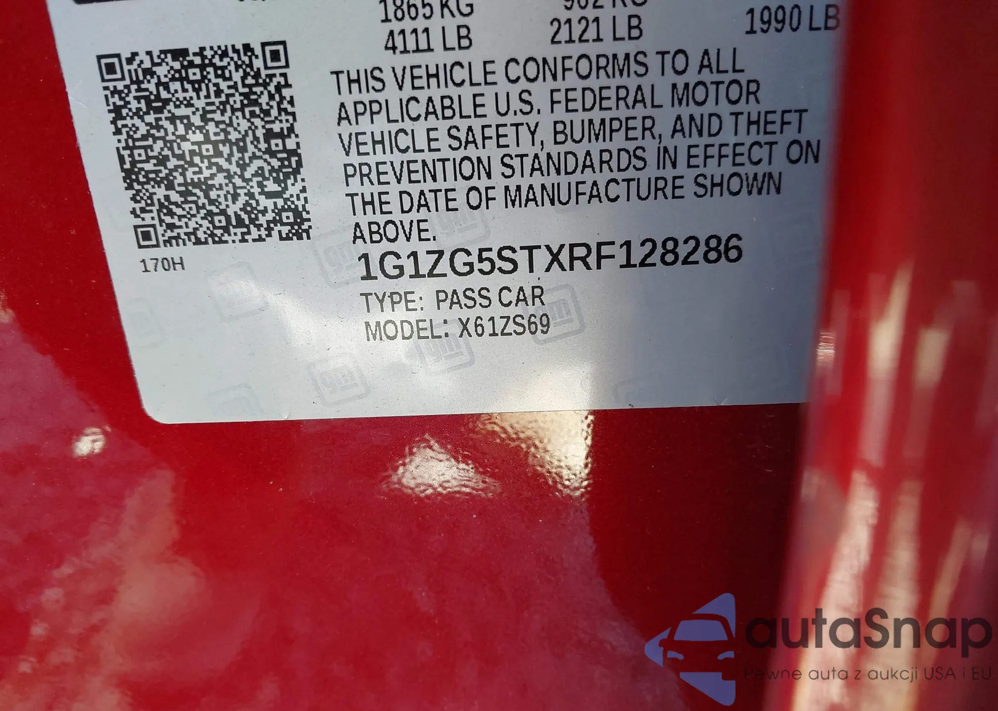LOT: 43457853 VIN: 1G1ZG5STXRF128286