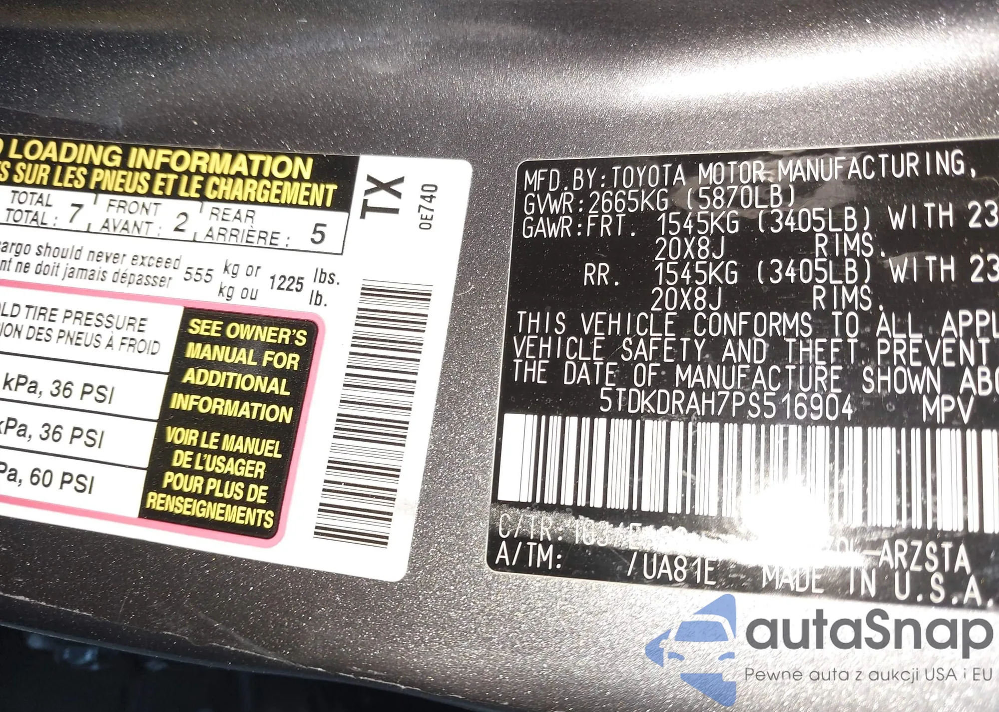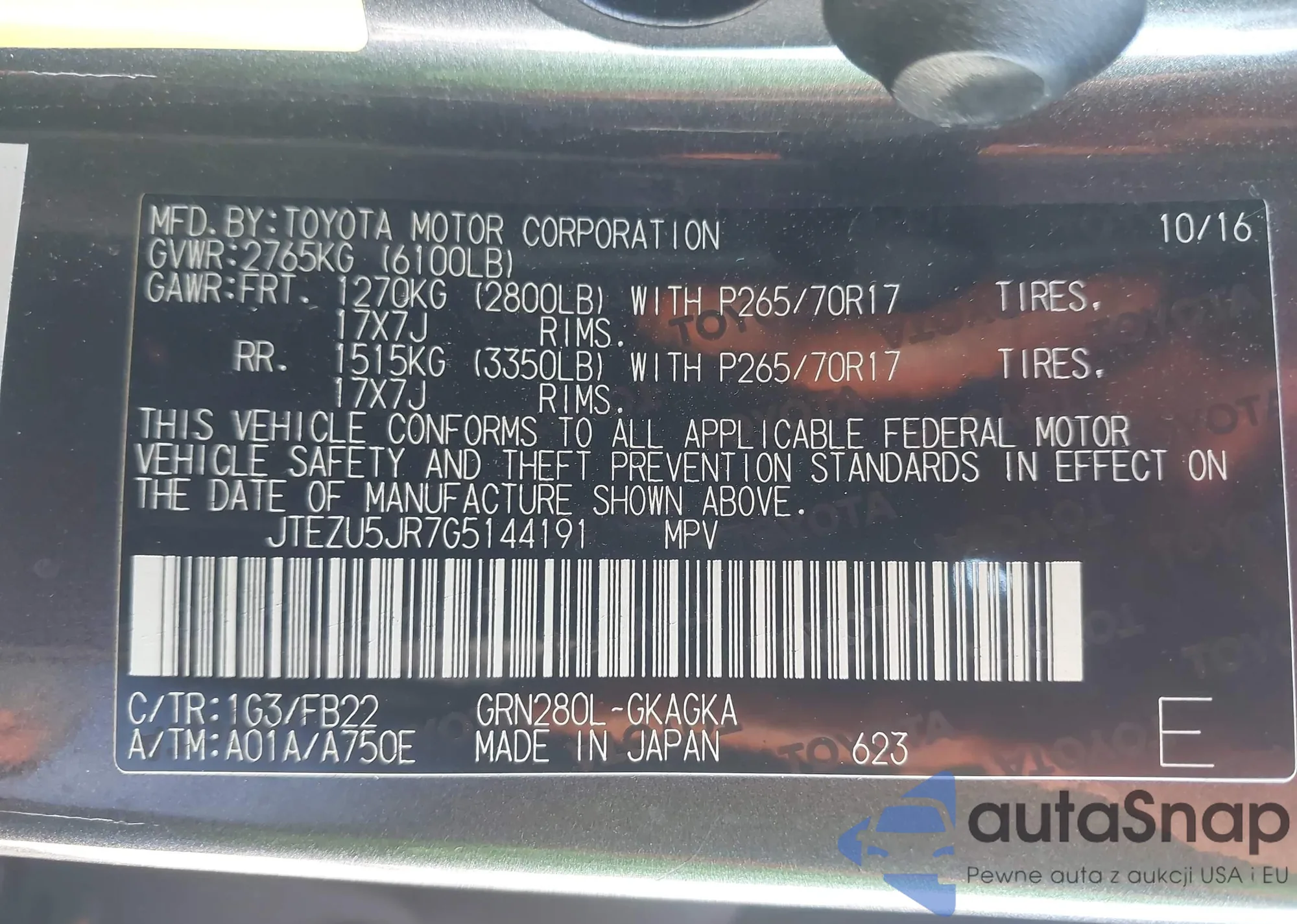 LOT: 43535878 VIN: JTEZU5JR7G5144191