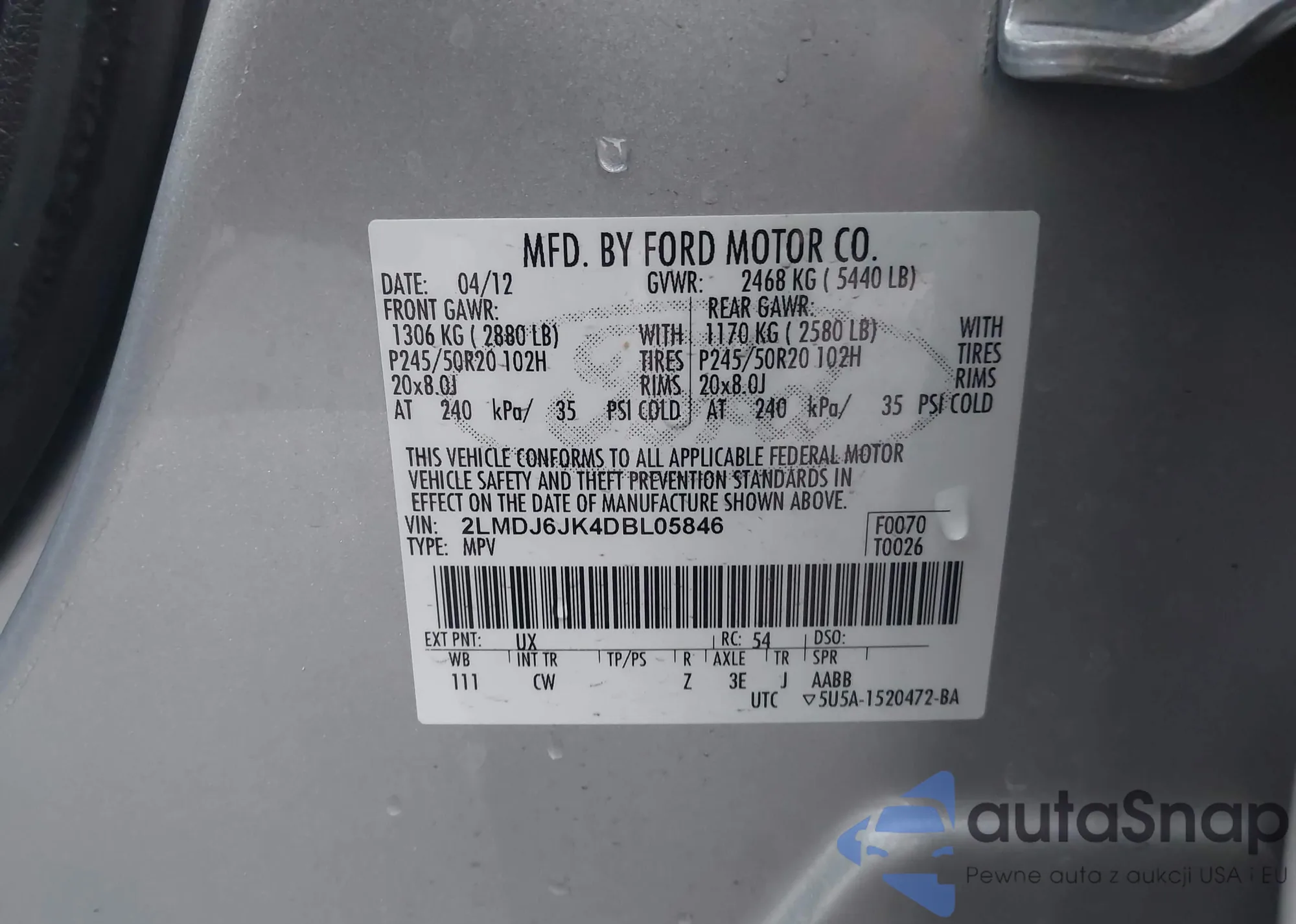 • VIN 2LMDJ6JK4DBL05846